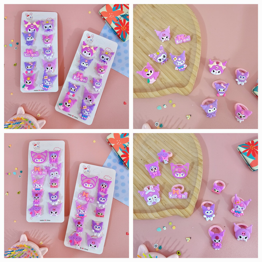 (Cada blíster cuenta con 10 colitas de "Kuromi" con distintos diseños. Posee una gran elasticidad. Ideal para destacar tu peinado).