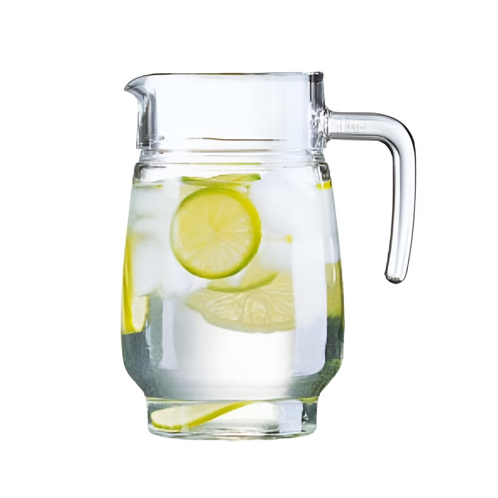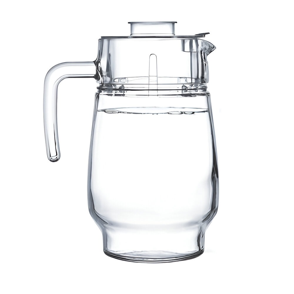 ( Está hecha de vidrio templado, lo que garantiza su durabilidad y resistencia. La tapa de acrílico incluida asegura que tus bebidas se mantengan frescas y protegidas, es perfecta para servir bebidas frías en reuniones familiares o eventos).