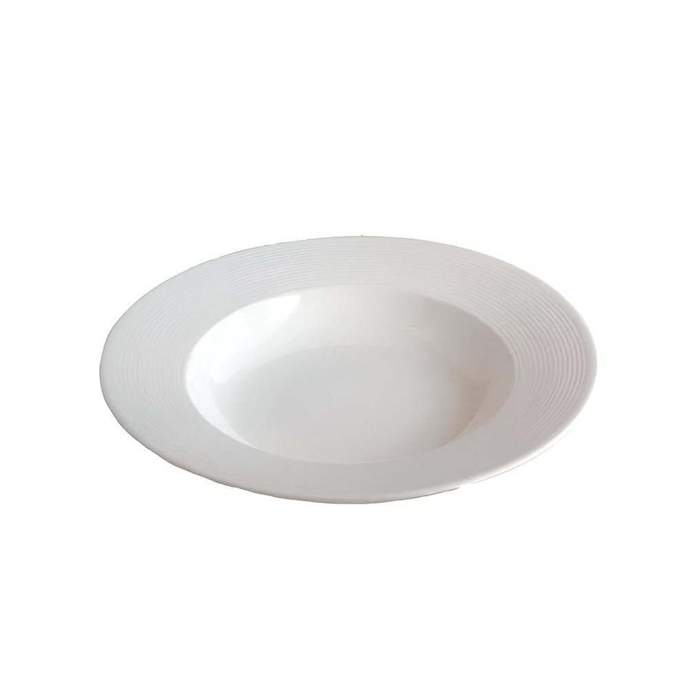 (Plato hondo en color blanco, ideal para aportar un toque de elegancia y belleza a su mesa. Resistente a microondas y lavavajillas).