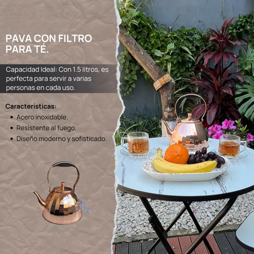(Pava de acero inoxidable con Filtro para Té , con protección en su mango para evitar quemaduras, ideal para su cocina).