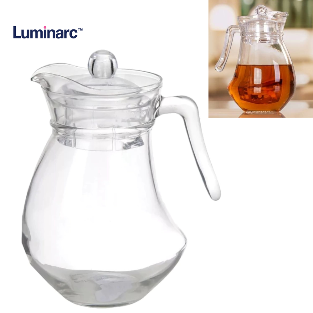 ( Está hecha de vidrio templado, lo que garantiza su durabilidad y resistencia. La tapa de acrílico incluida asegura que tus bebidas se mantengan frescas y protegidas, es perfecta para servir bebidas frías en reuniones familiares o eventos).