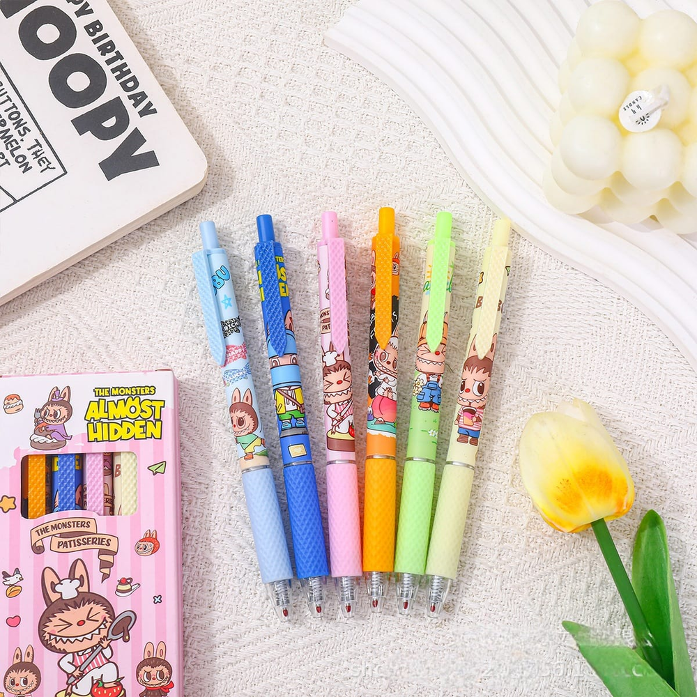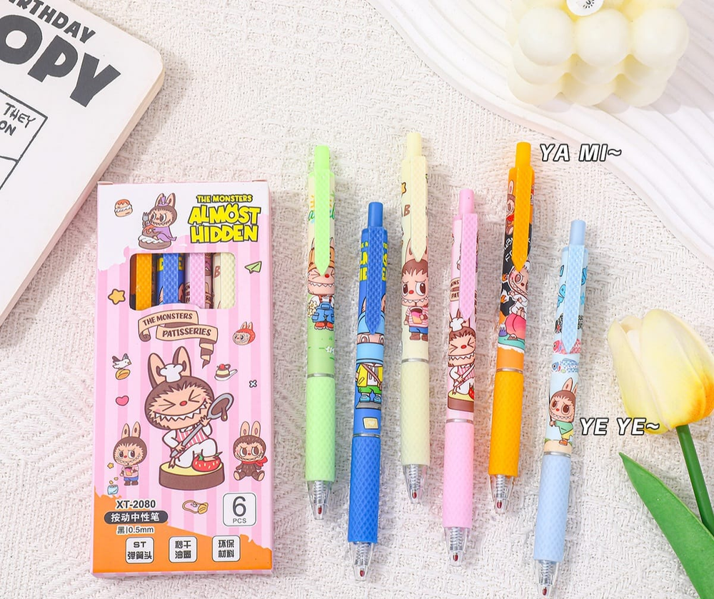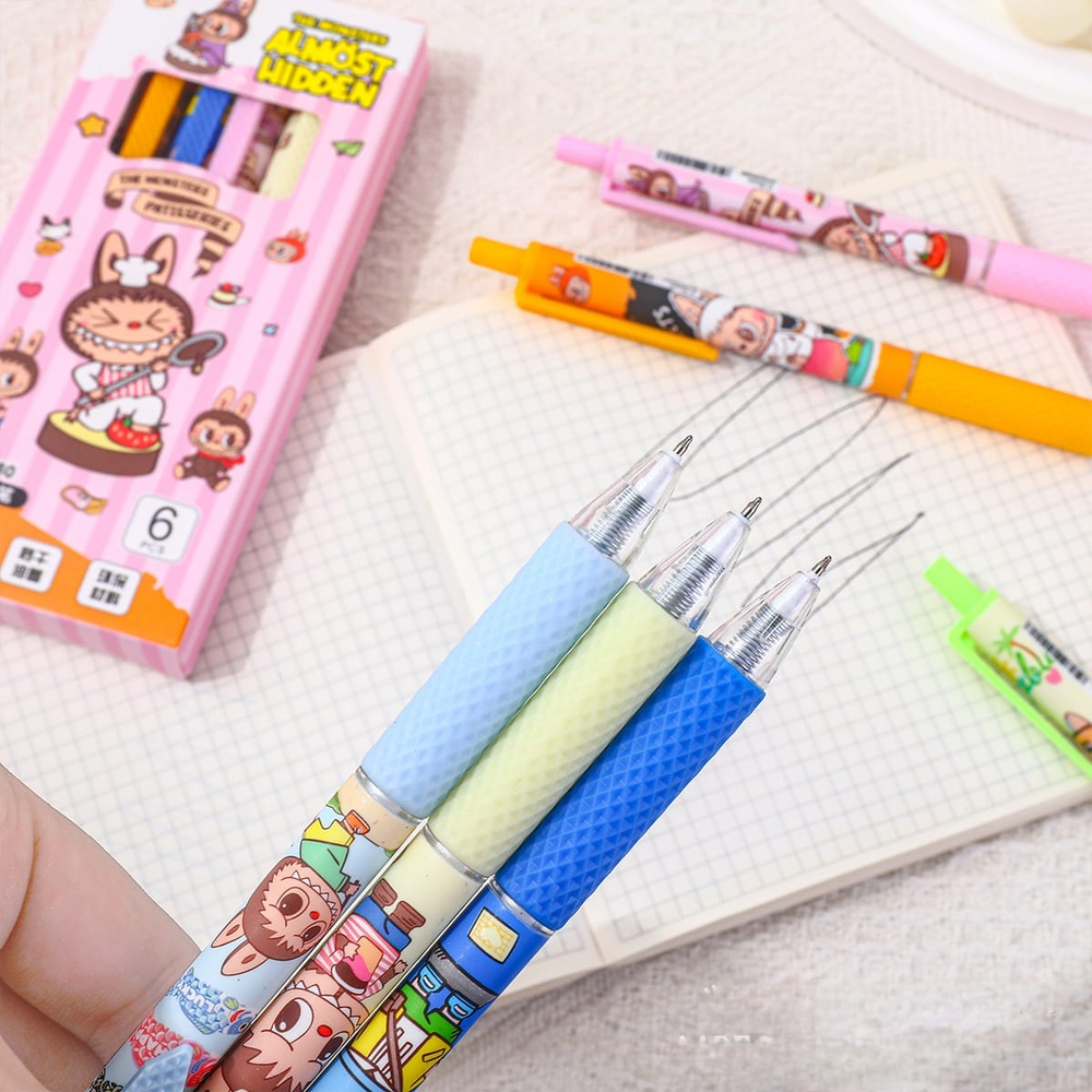 (Cuenta con 6 biromes de tinta color negro con mecanismo retráctil con diseño de "Labubu" y un gancho. Ideal para regalar).