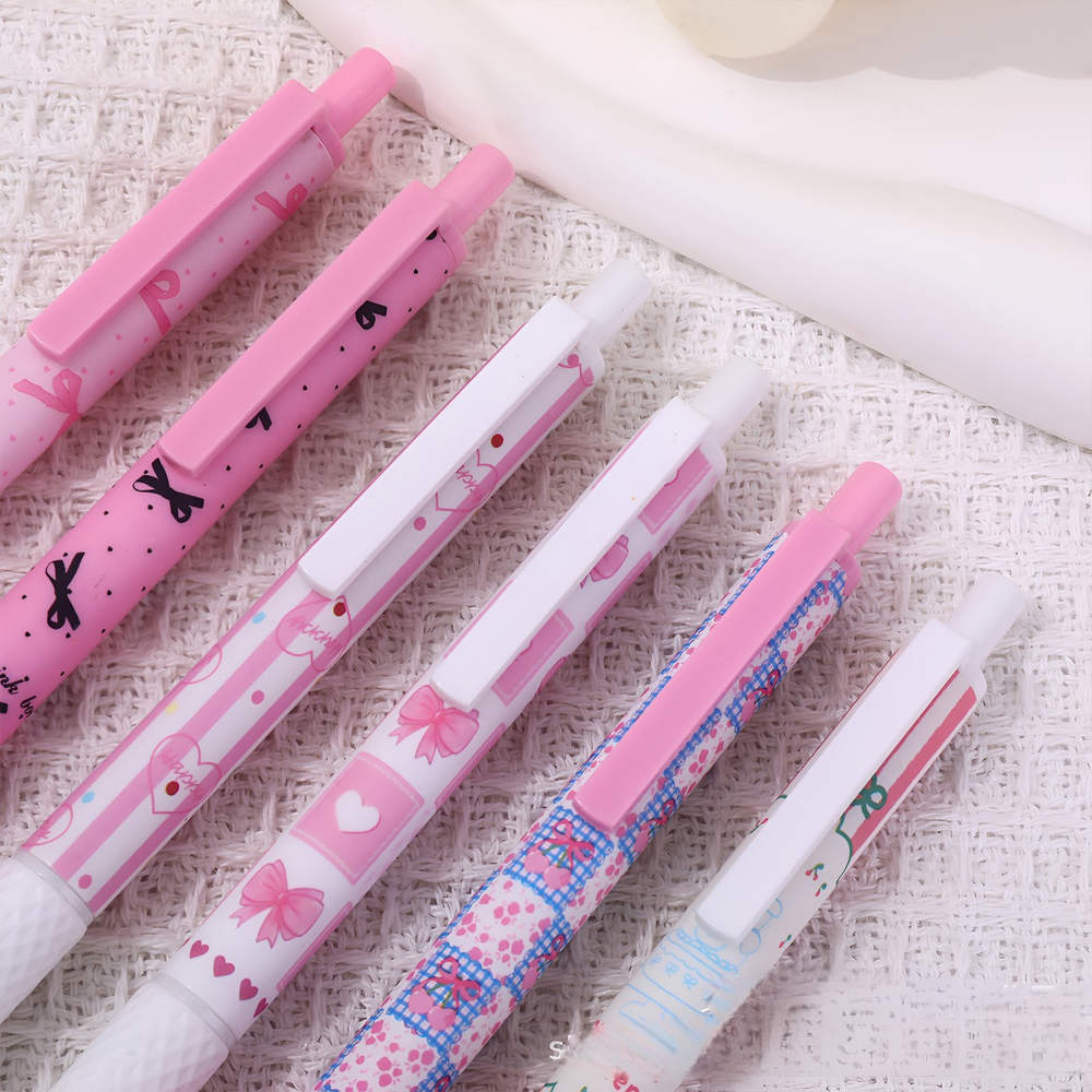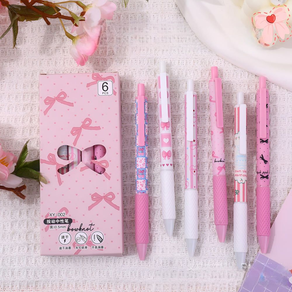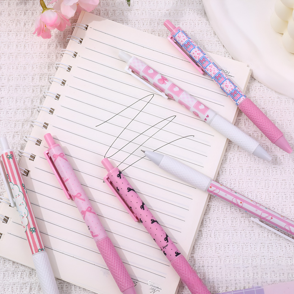 (Cuenta con 6 biromes de tinta negra, hermosos diseños de color rosa con moños. Ideal para regalar).