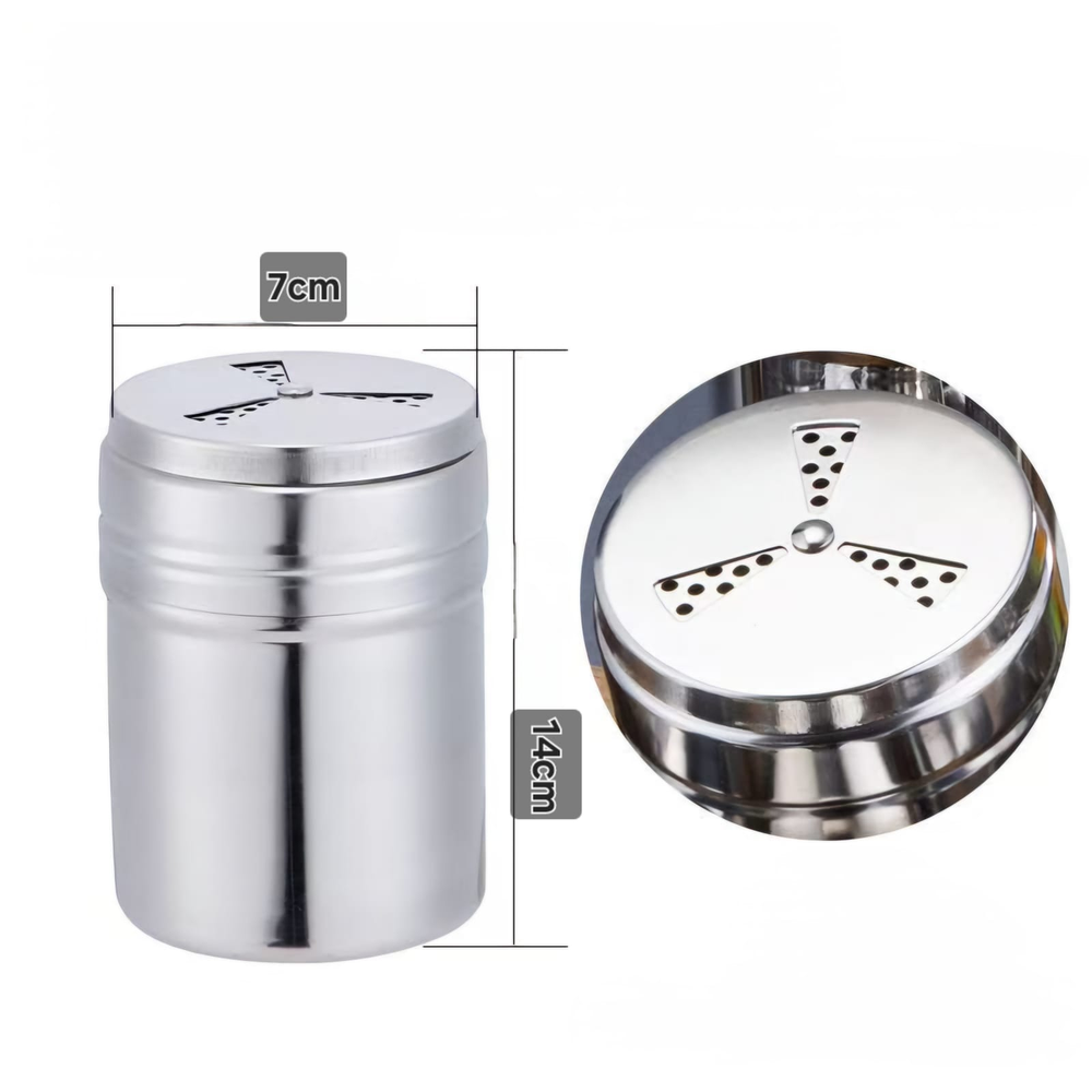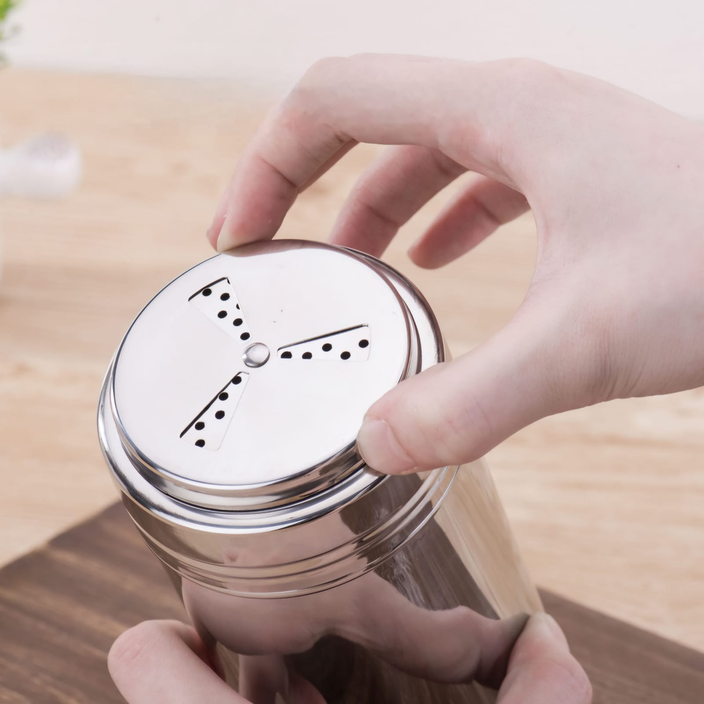 (Especiero de acero inoxidable, gire la tapa para elegir el tamaño de orificio que desee. Ideal para el hogar).