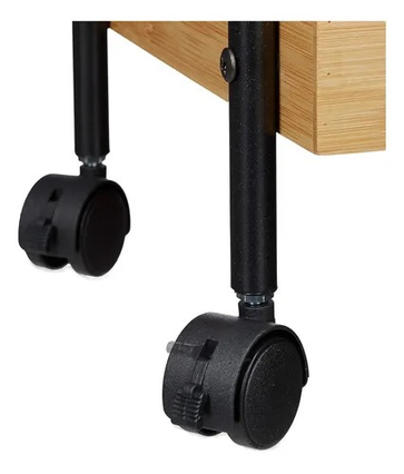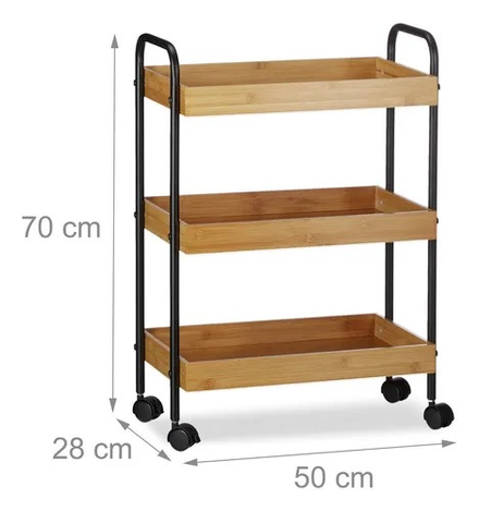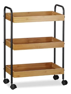 (Carrito organizador 3 niveles, con 4 ruedas reforzadas giratorias que permiten trasladarlo donde desees. podrás tener tus frutas, verduras y otros alimentos siempre a mano y en perfecto estado. Su diseño en color marrón con negro le dará un toque moderno y elegante a tu cocina).