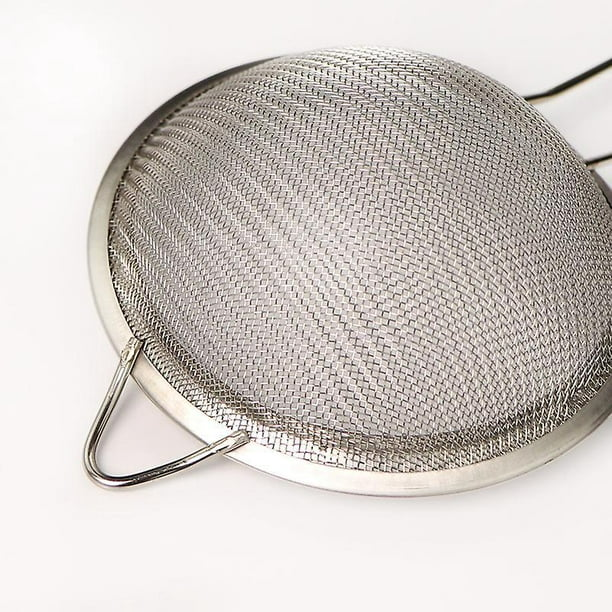 (Colador grande de acero inoxidable. Su mango cuenta con un orificio para poder colgarlo).