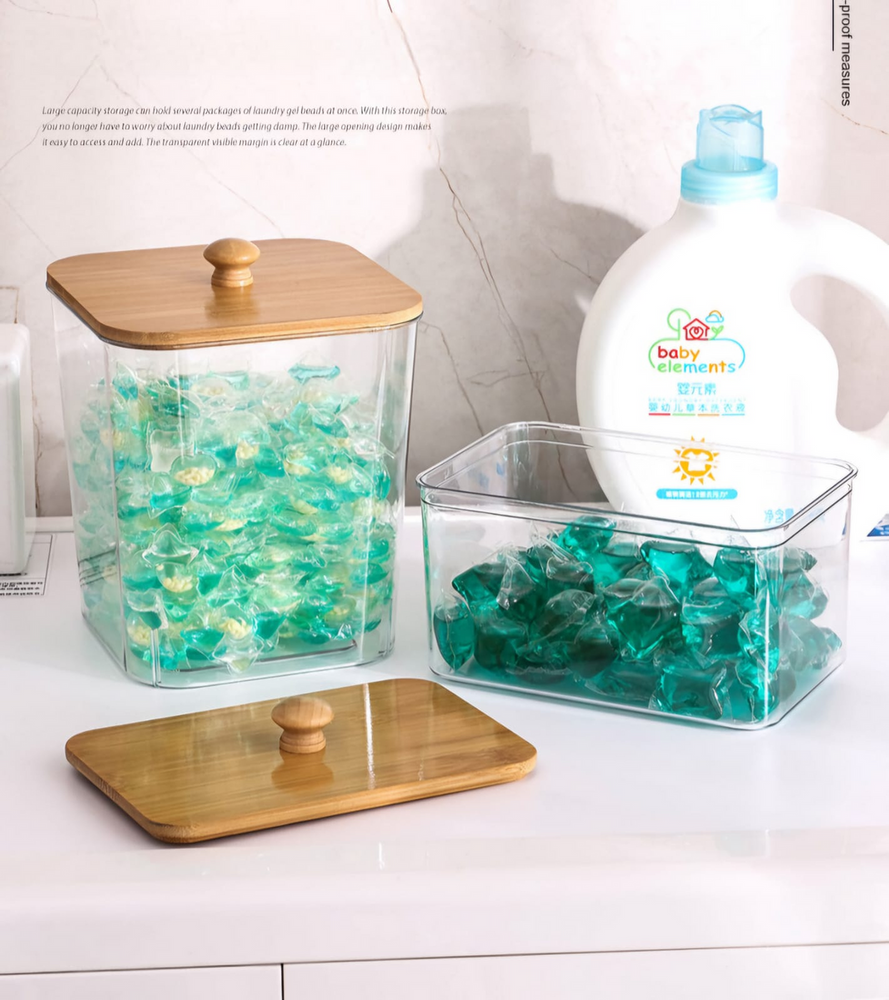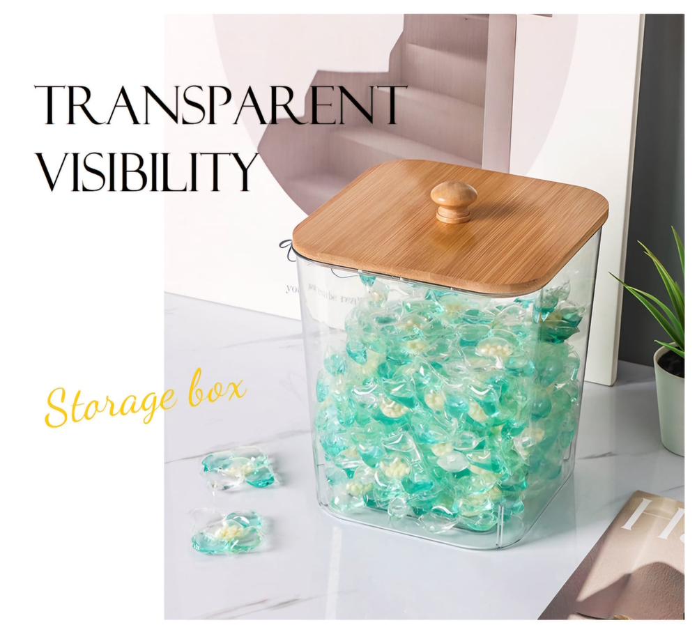 (Cuenta con un frasco transparente y una tapa de madera bambú. Ideal para colocar lo que desees).