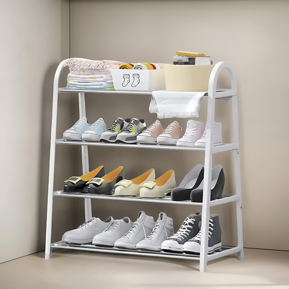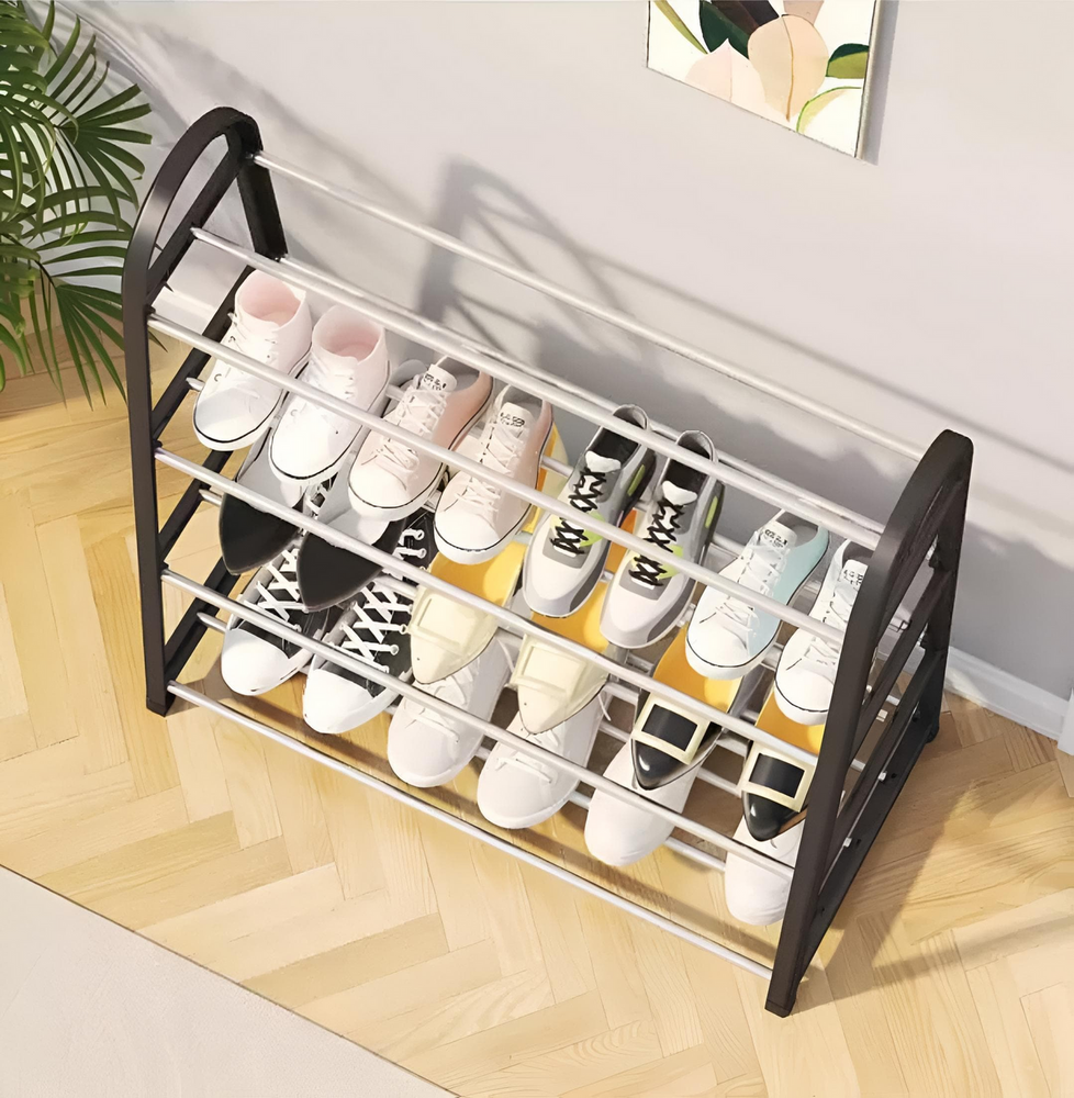 (Zapatero de plástico con varillas de metal de 4 pisos. Super fácil de armar. Ideal para organizar tu espacio).