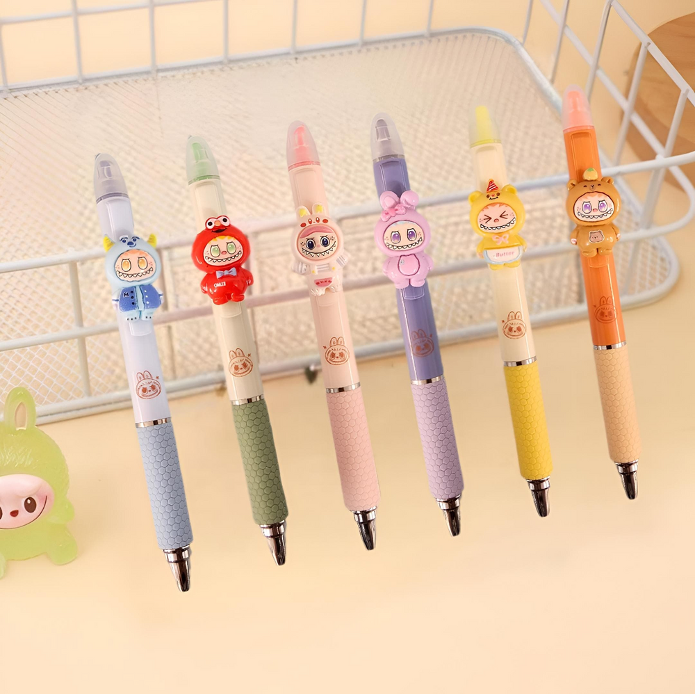 (Lapicera con resaltador con un tierno diseño de la "Labubu". Vienen 6 colores diferentes. Ideal para regalar).