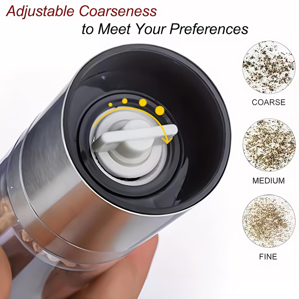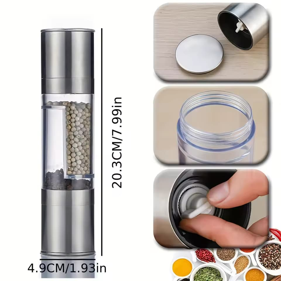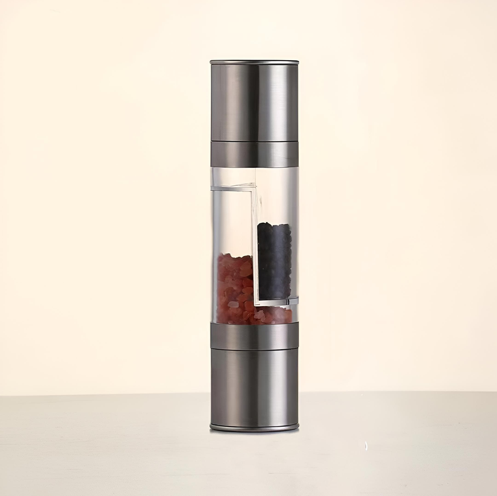 (Descubre la versatilidad y elegancia del molino de sal y pimienta 2 en 1 manual, un accesorio esencial para cualquier cocina. Al ser manual, te brinda el control total sobre la molienda, permitiéndote ajustar la textura de la sal y la pimienta según tus preferencias. Su funcionalidad y estética lo convierten en un regalo perfecto para los amantes de la gastronomía).