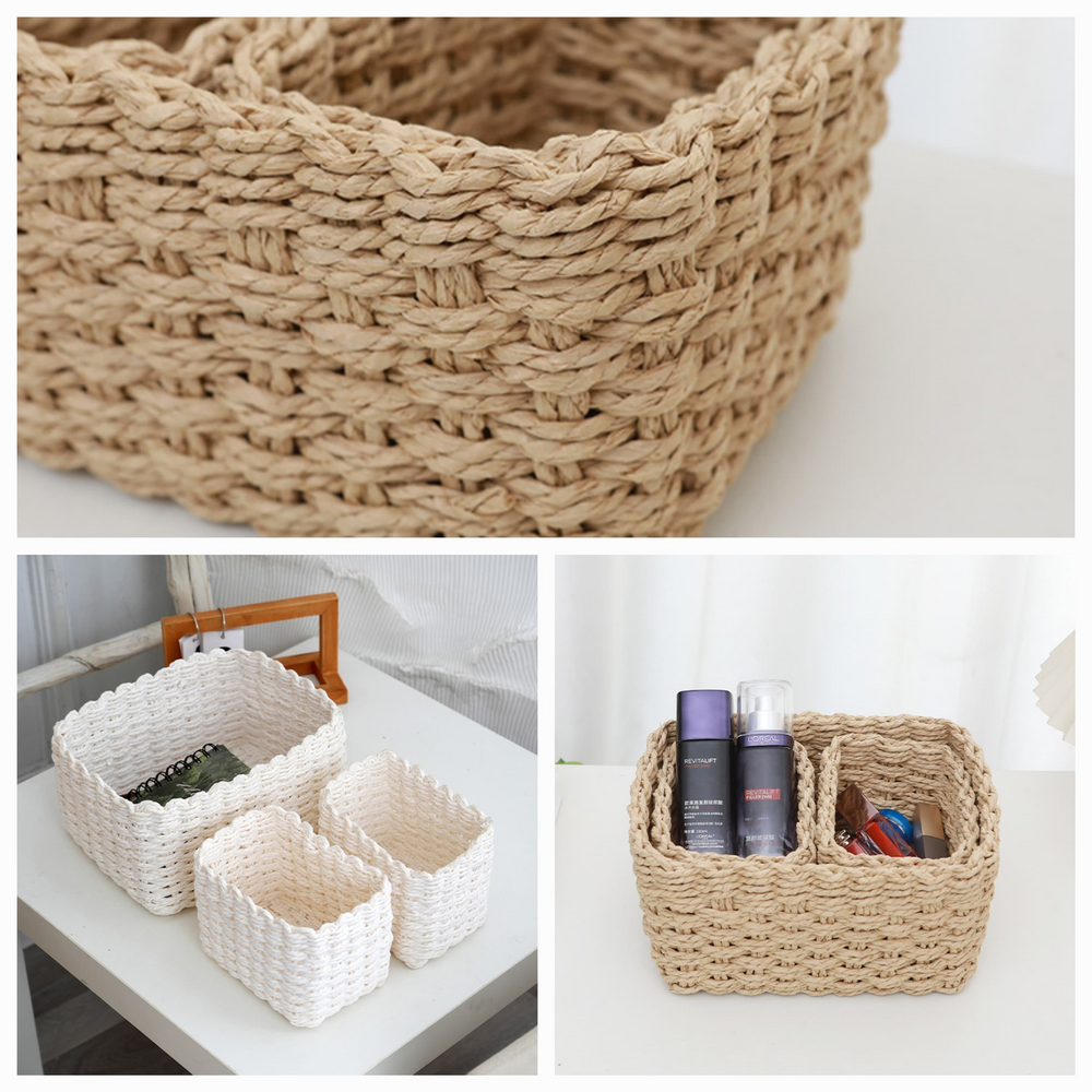 (Canastos organizadores, uno grande y dos pequeños ,muy buena calidad, resistentes y cuentan con sistema apilable. Ideales para guardar maquillaje, juguetes, etc).
