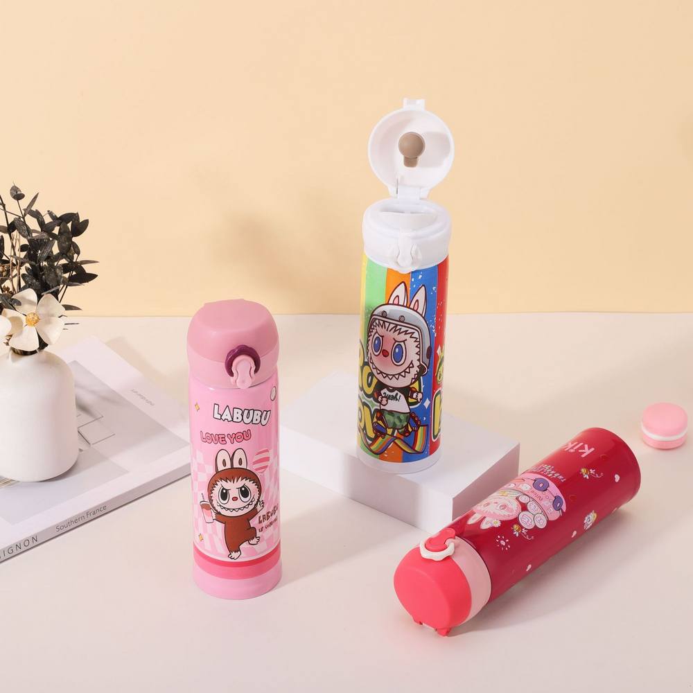 (Botella de acero inoxidable con temática de "Labubu" disponible en varios colores , fácil de llevar a cualquier lugar).