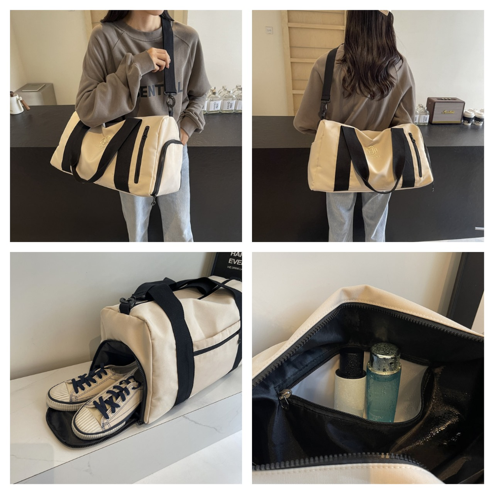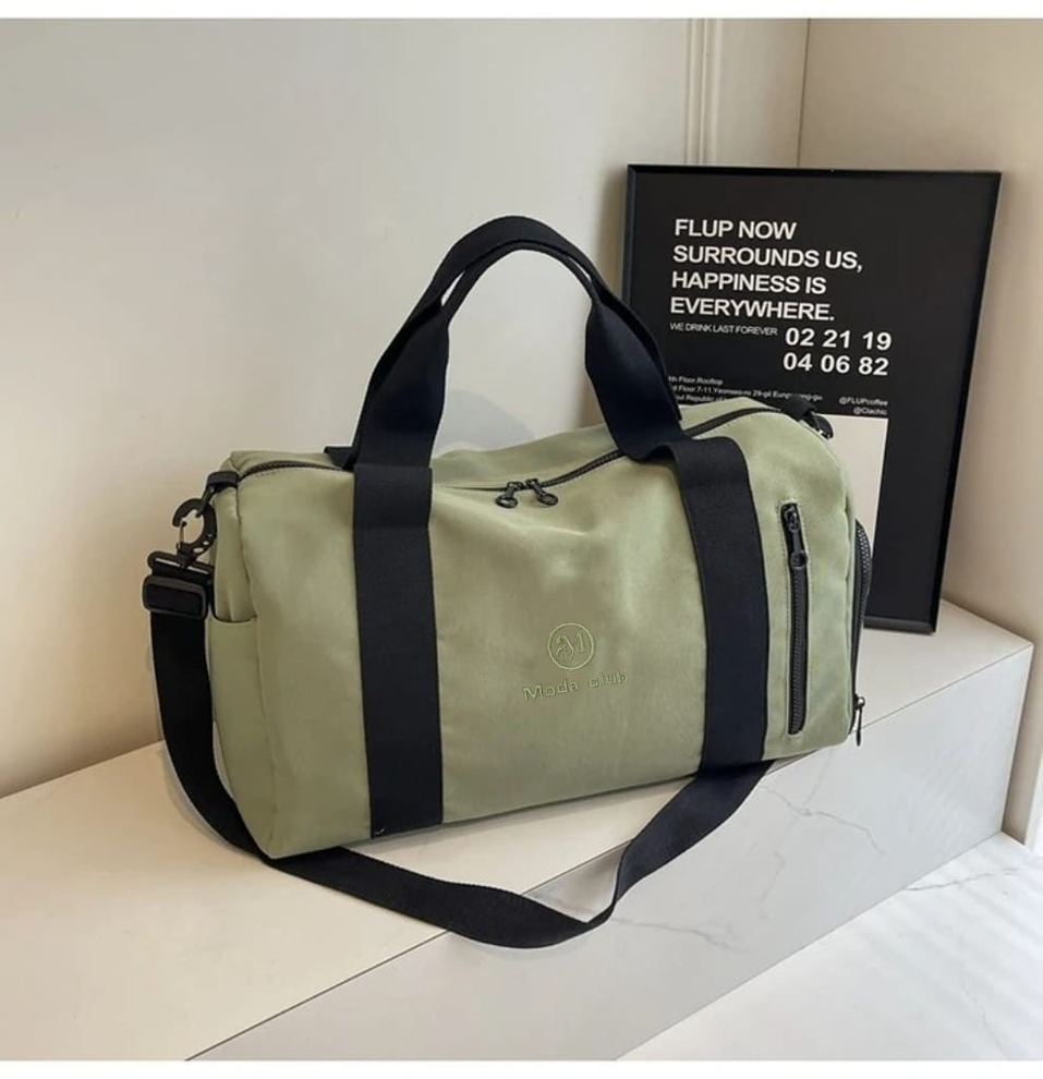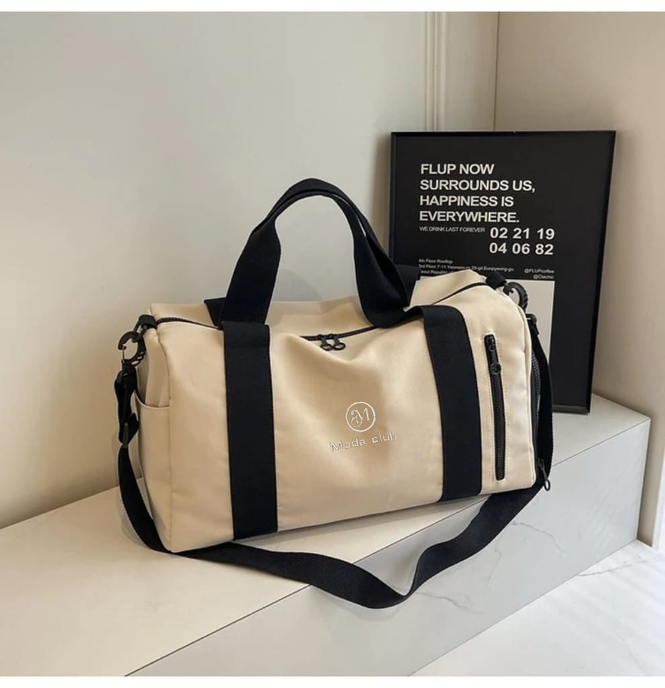 (Bolso de Viaje de gran capacidad, diseñado para apoyar arriba de la valija. Cuenta con un bolsillo frontal con cierre, dos bolsillos internos, uno para húmedos y un compartimiento para zapatos.. Disponible en 5 colores ).