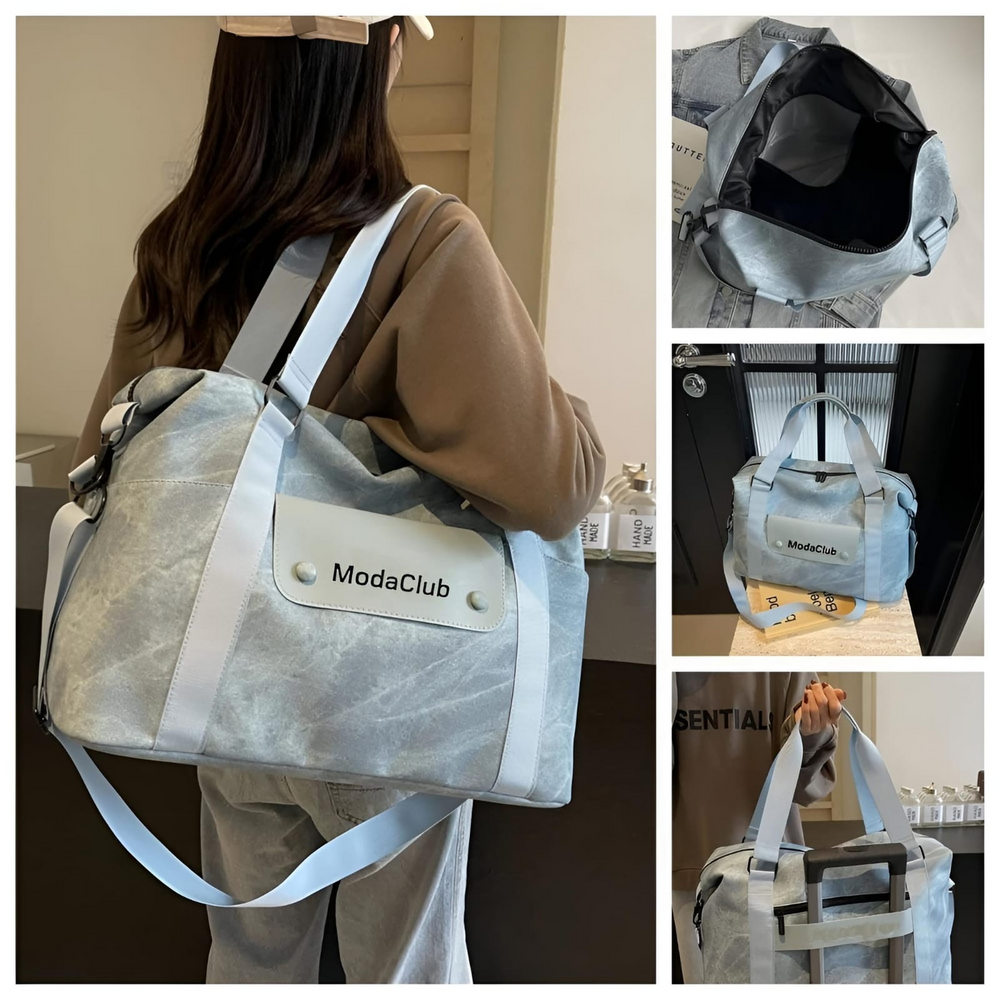 (Bolso de Viaje de gran capacidad, diseñado para apoyar arriba de la valija. Cuenta con su correa larga para poder llevarlo cómodamente, cuenta dos bolsillo internos, uno para humedos y un bolsillo frontal con cierre. Disponible en 4 colores).