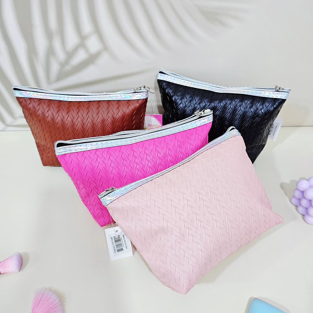 (Neceser de cuerina, cuenta con un compartimiento principal amplio y cierre holográfico. Ideal para guardar accesorios, maquillaje, etc. Disponible en 4 colores).
