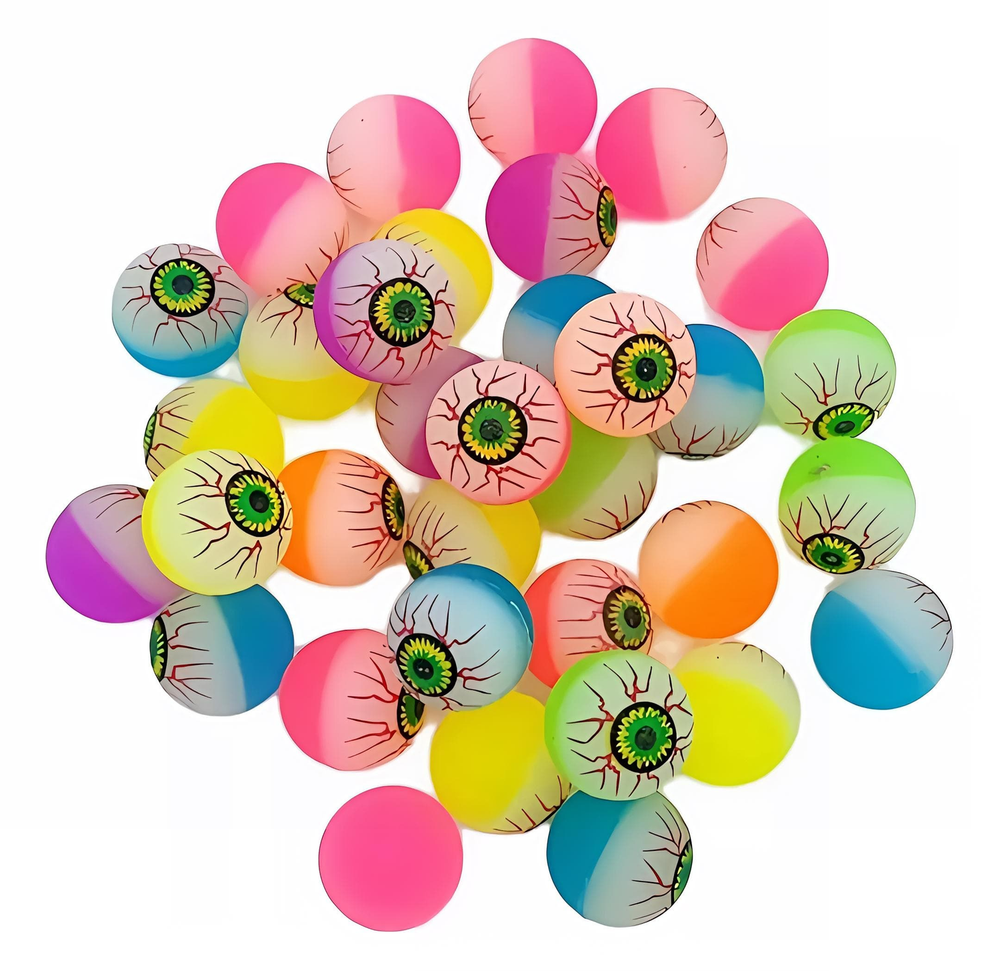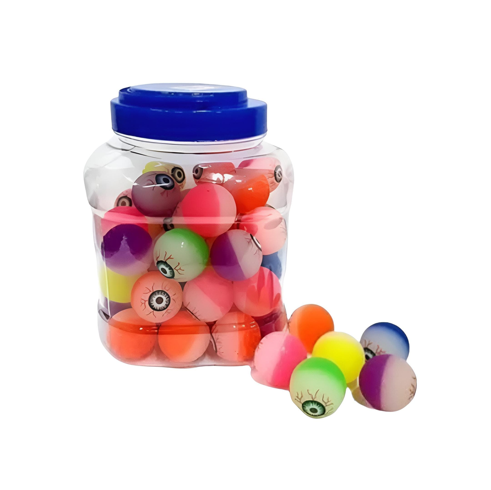 (Pelotas saltarinas con diseño de ojo, vienen en colores surtidos. ideal para los mas chicos).