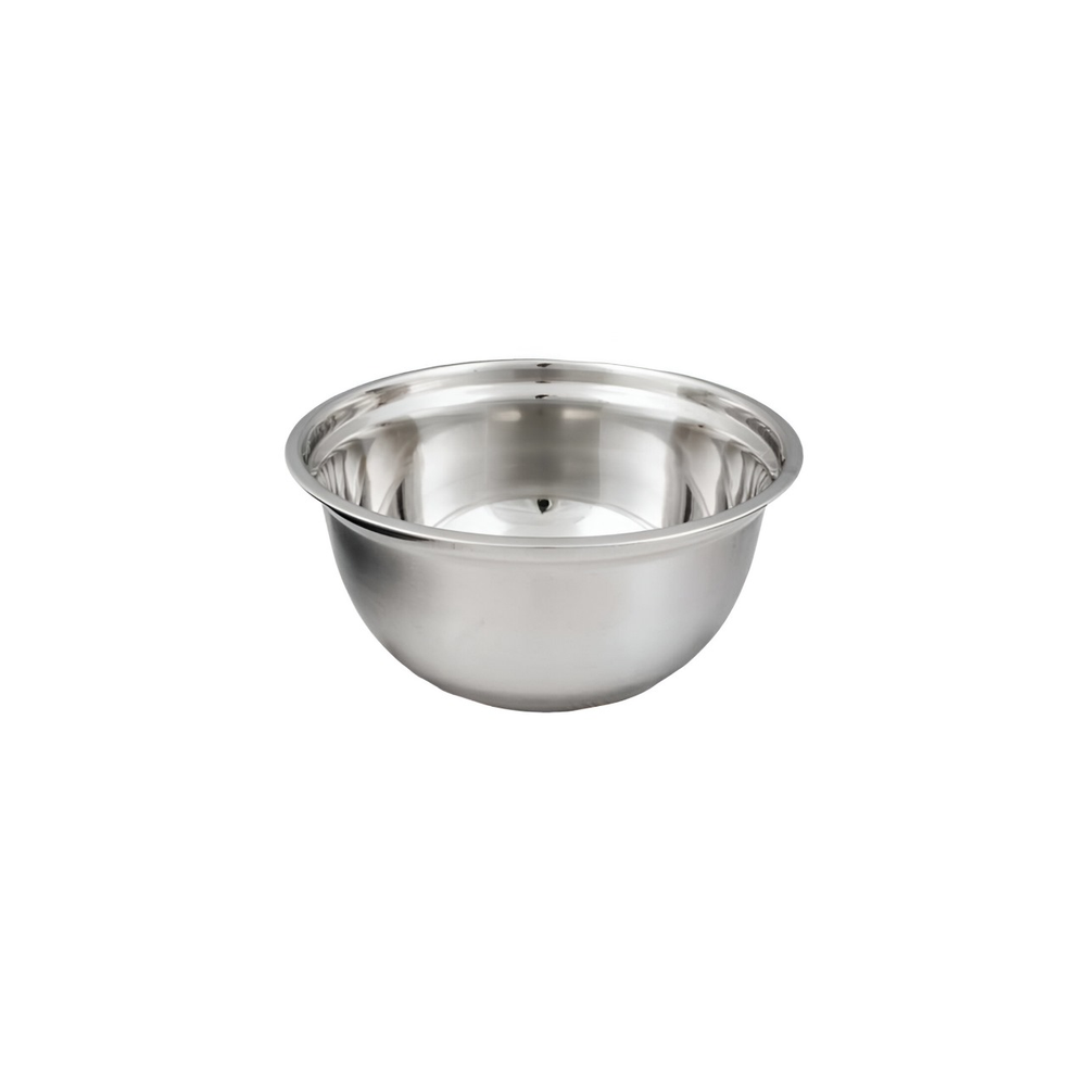 (Bowl de acero . Su exterior pulido mate, con grado de metal que se pueden utilizar como recipiente para mezclar y para servir. Base plana que estabiliza el bowl.)
