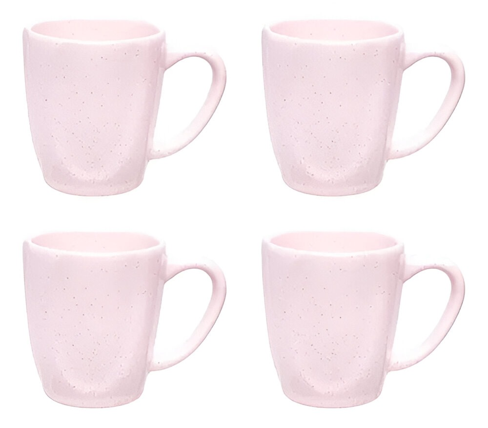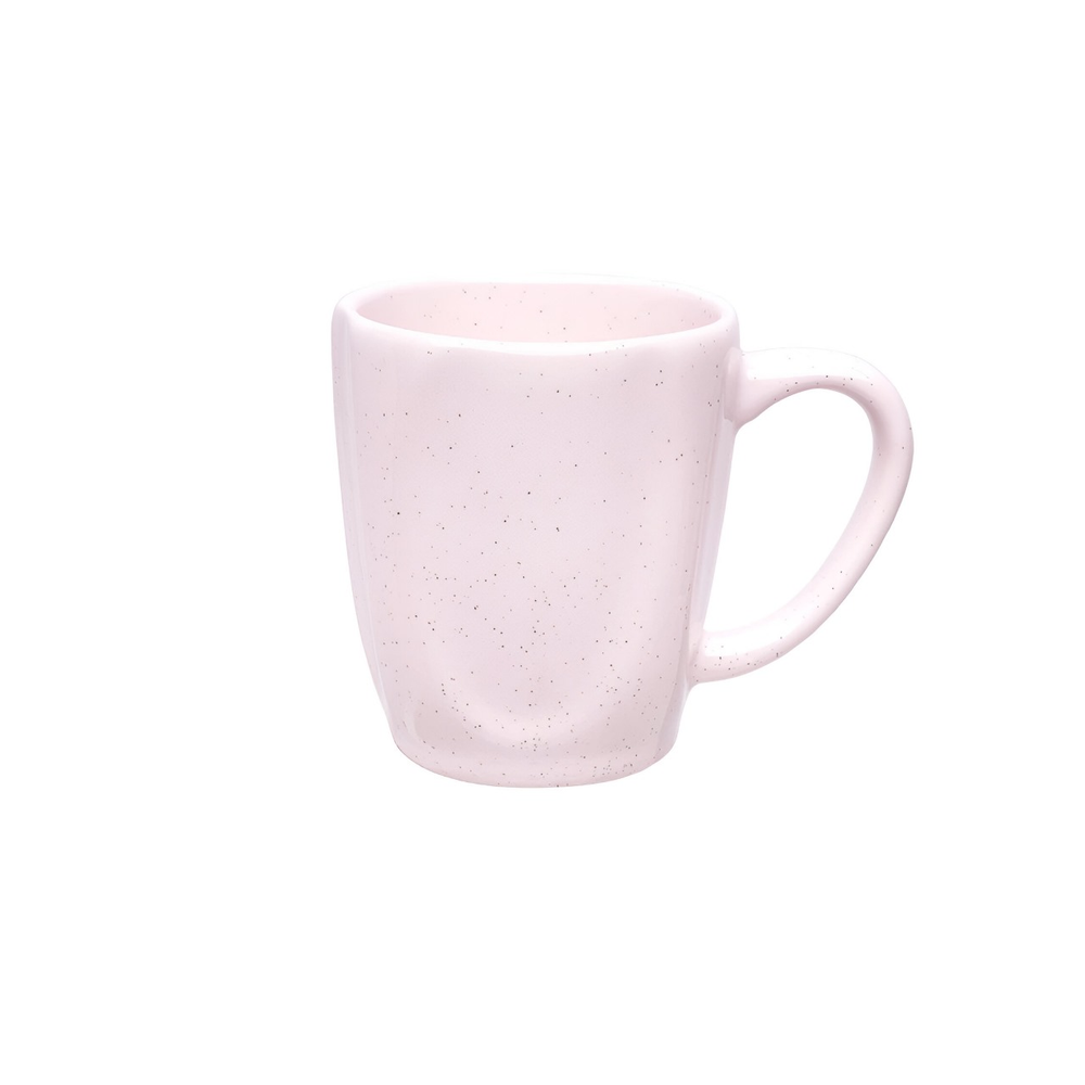 (Taza de Porcelana con asa en color rosa con puntillismo. Un clásico infaltable para el hogar).