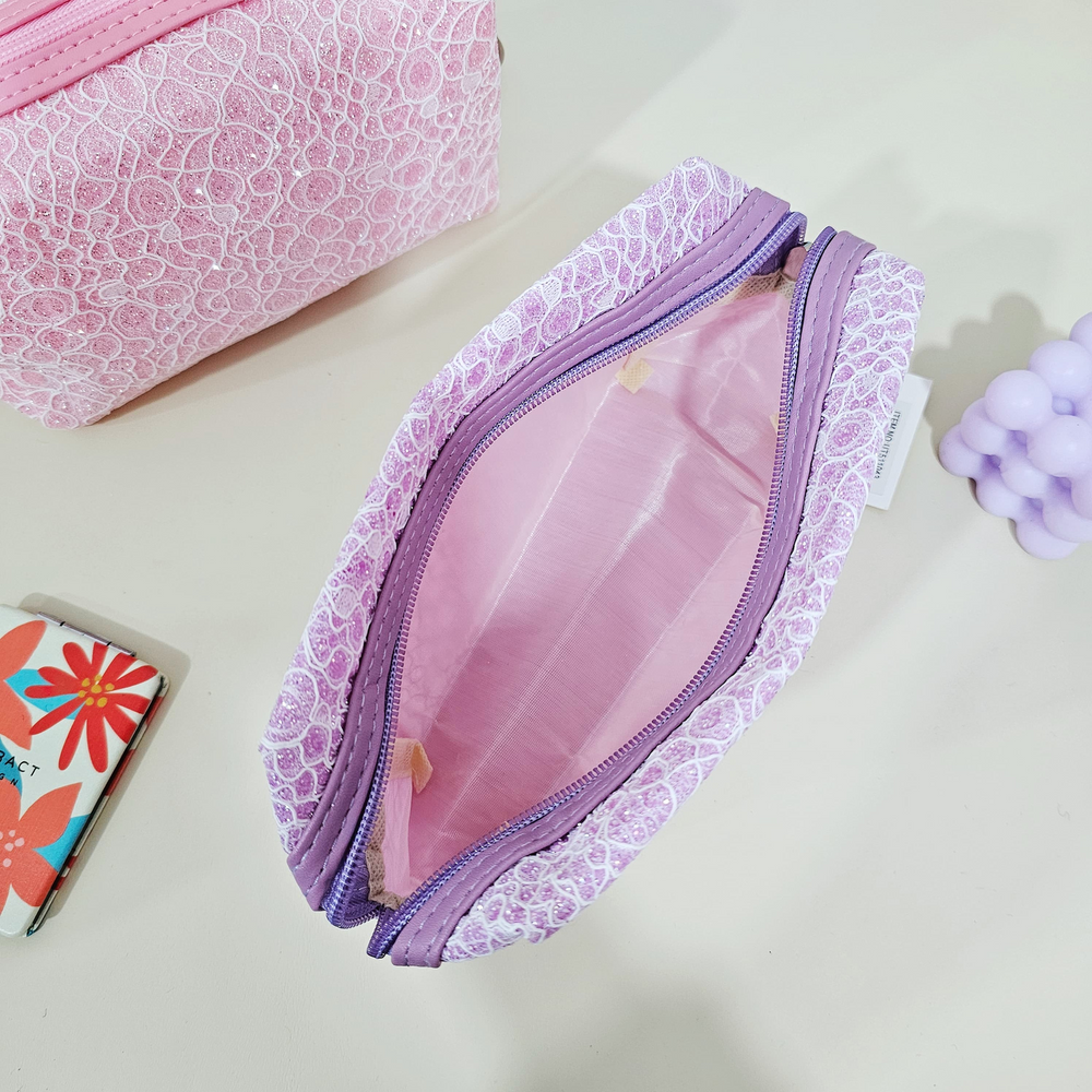 (Cuenta con 12 porta cosméticos, rosa, morado, verde menta y beige. Ideal para guardar accesorios, maquillaje, etc. ).