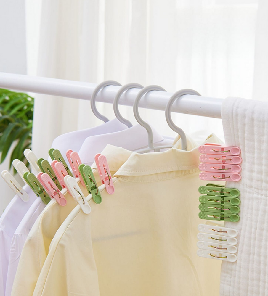( Pack 18u. de ganchos para la ropa, ideales para sostener la ropa en las perchas, en un tender, o donde quieras, así impide que no se caiga o vuele. Cuenta con 3 colores diferentes).