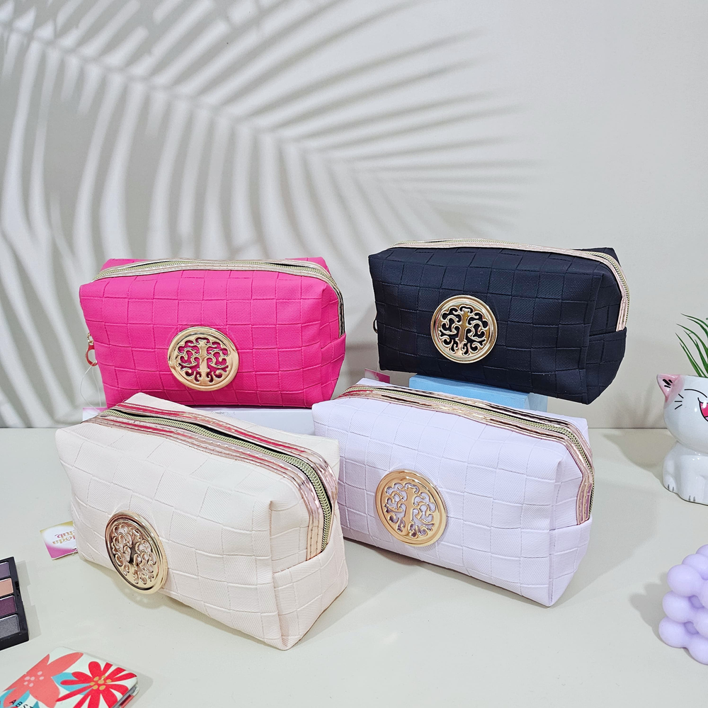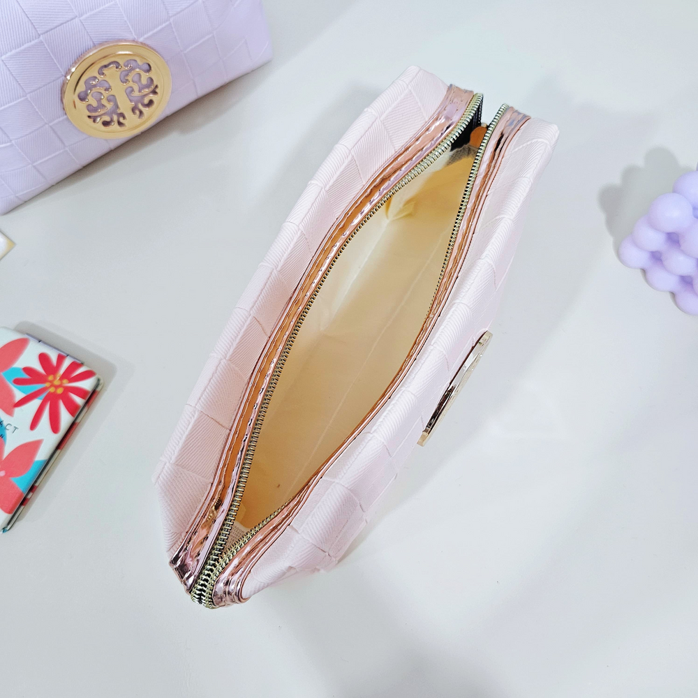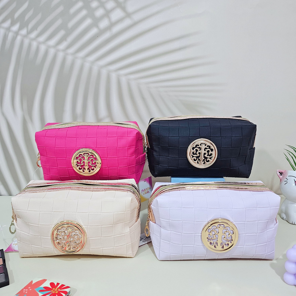 (Portacosmetico con un compartimiento amplio, cierre holográfico y un dije . Ideal para guardar accesorios, maquillaje, etc. Disponible en 4 colores).