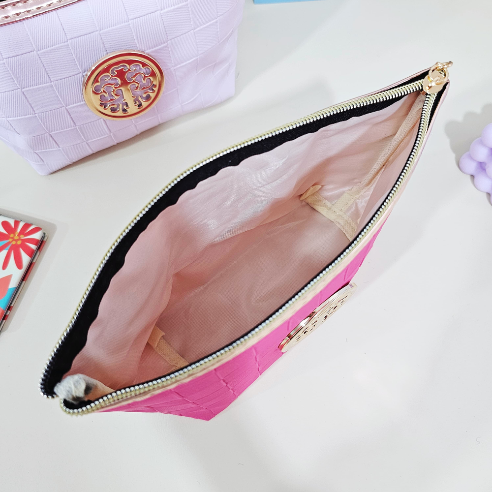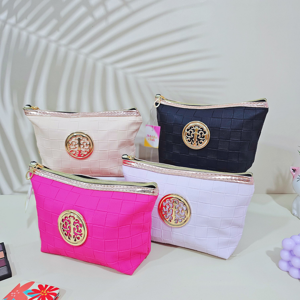 (Portacosmetico con un compartimiento amplio, cierre holográfico y un dije . Ideal para guardar accesorios, maquillaje, etc. Disponible en 4 colores).