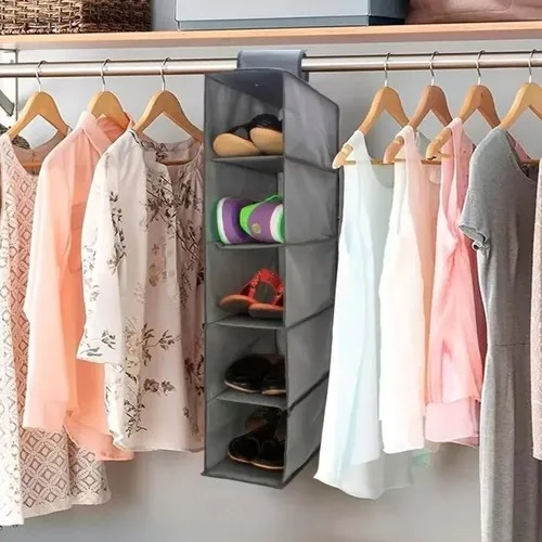 (Cuenta con 5 divisiones, un gancho para colgar y es plegable, por lo que se puede guardar en cualquier lugar sin ocupar espacio. Es de fácil uso y armado. Viene en color gris. Ideal para almacenar ropa, zapatos, etc).