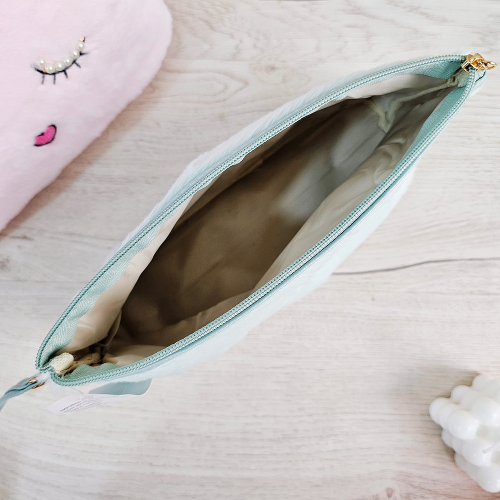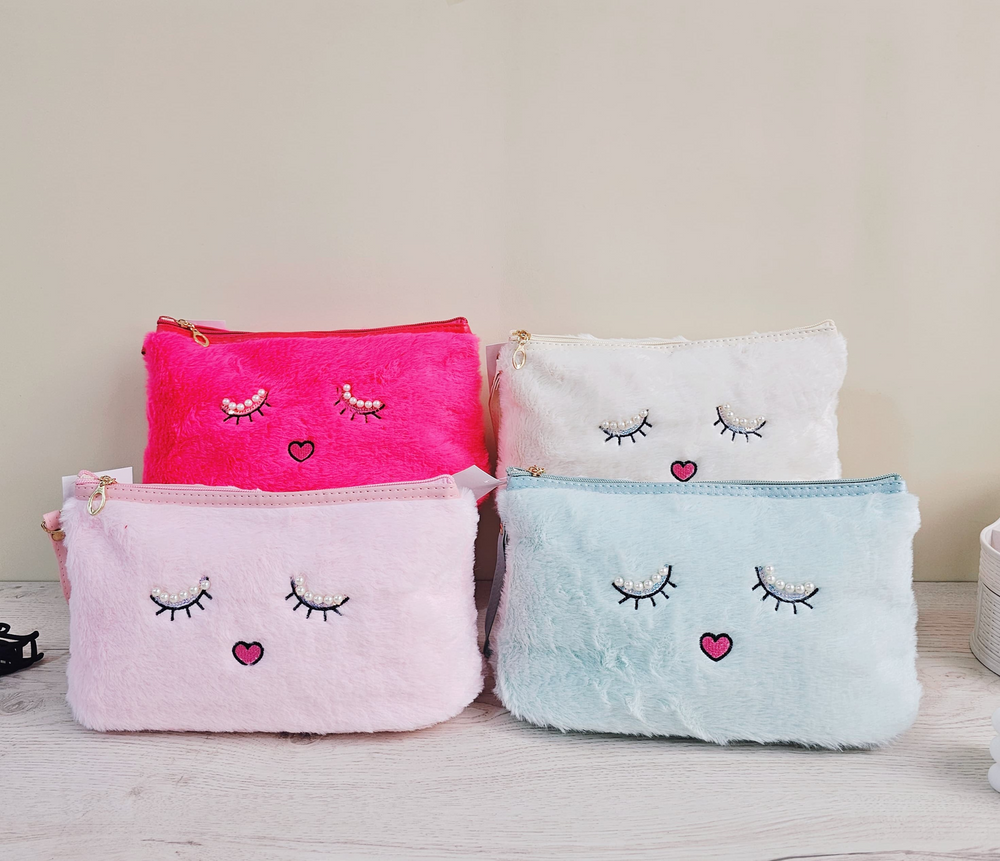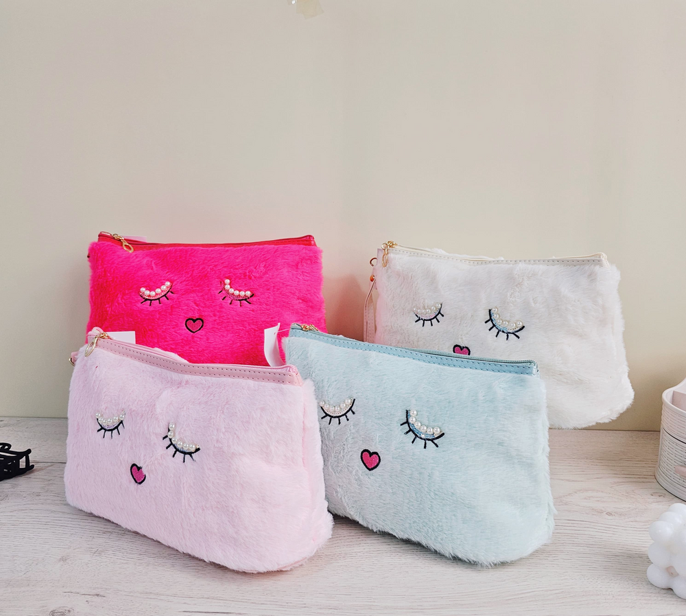 (Portacosmetico con detalles en bordado y perlas, su tela es suave y felpuda. Ideal para guardar maquillaje o lo que mas te guste).