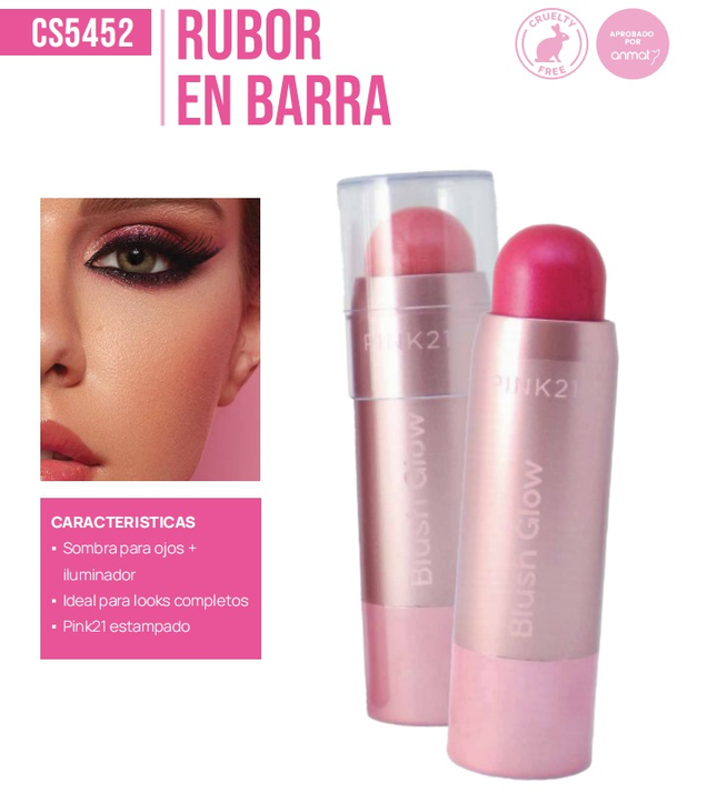 (Rubor en barra "Pink 21", posee 6 tonos diferentes a elección. Ideal para resaltar tu maquillaje y belleza natural).