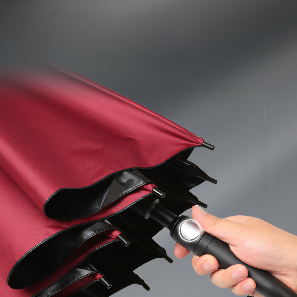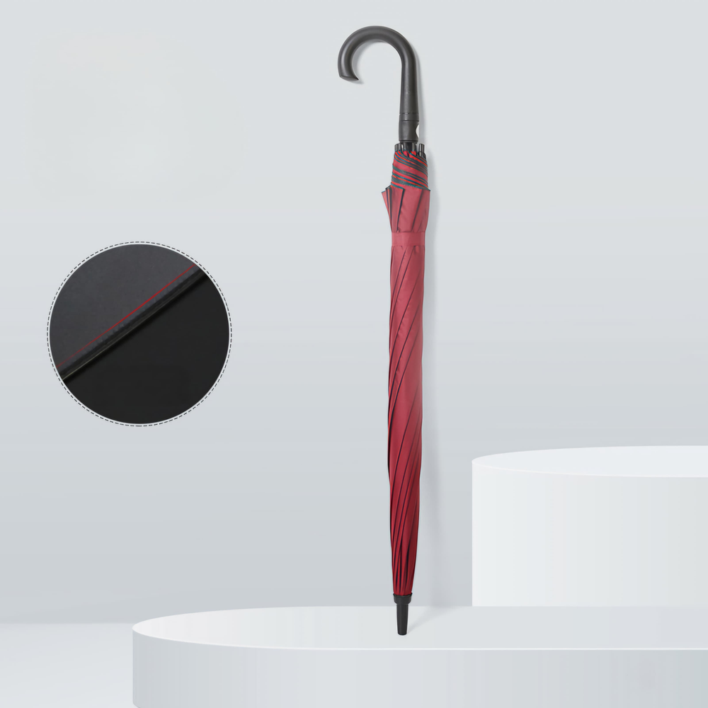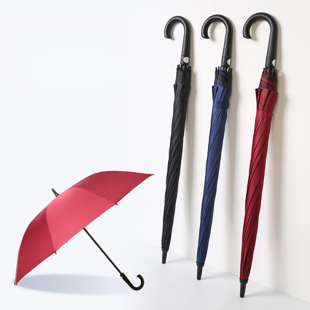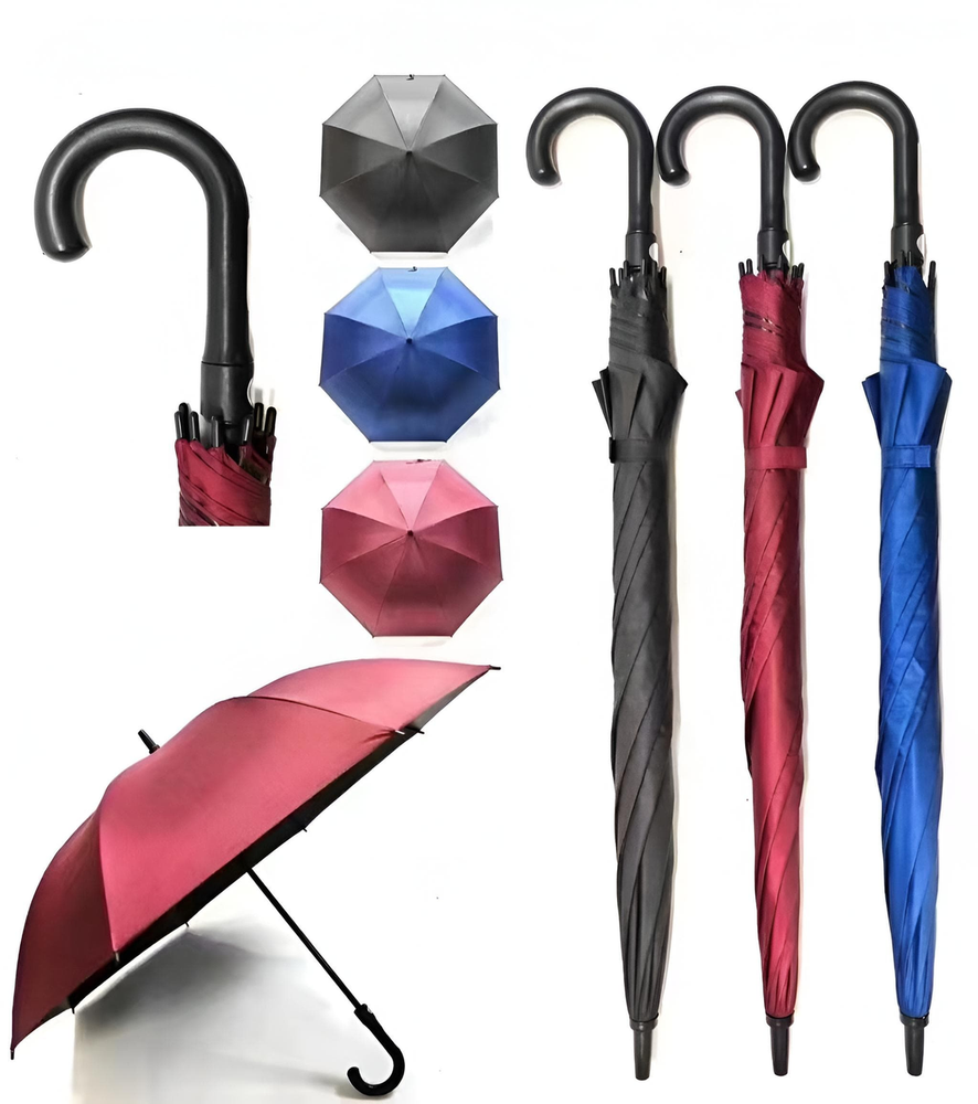 (Paraguas automático, con varillas reforzadas, ideal para días de lluvias. Cuenta con 3 colores diferentes y del lado de adentro son de color negro. Tiene un mango en forma curva de plástico para mejor sostén).