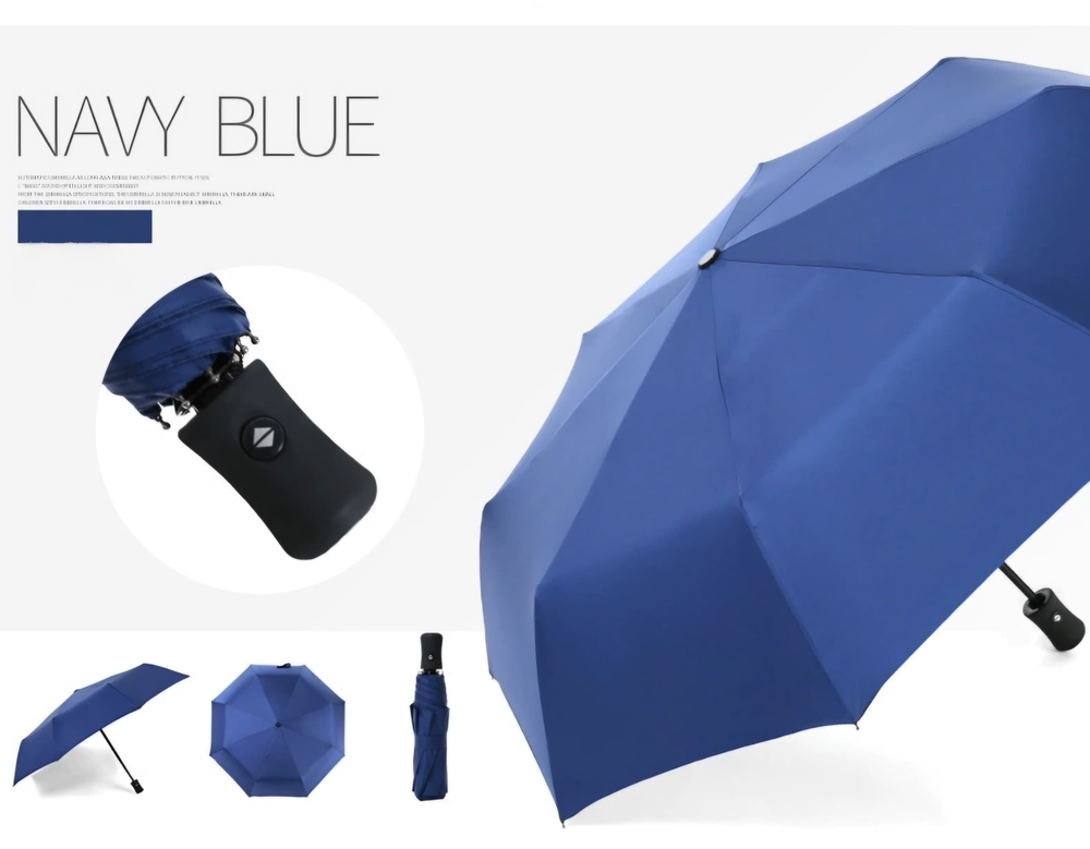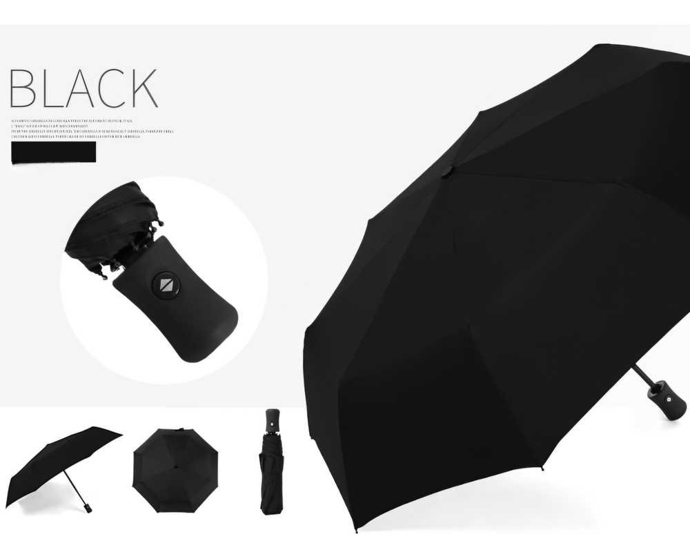 (Paraguas automático, con varillas reforzadas, ideal para dias de lluvias. Cuenta con 2 colores diferentes. Tiene un mango derecho de plástico. Su tamaño permite poder llevarlo en tu mochila o bolso a todos lados, para prevenir la lluvia).
