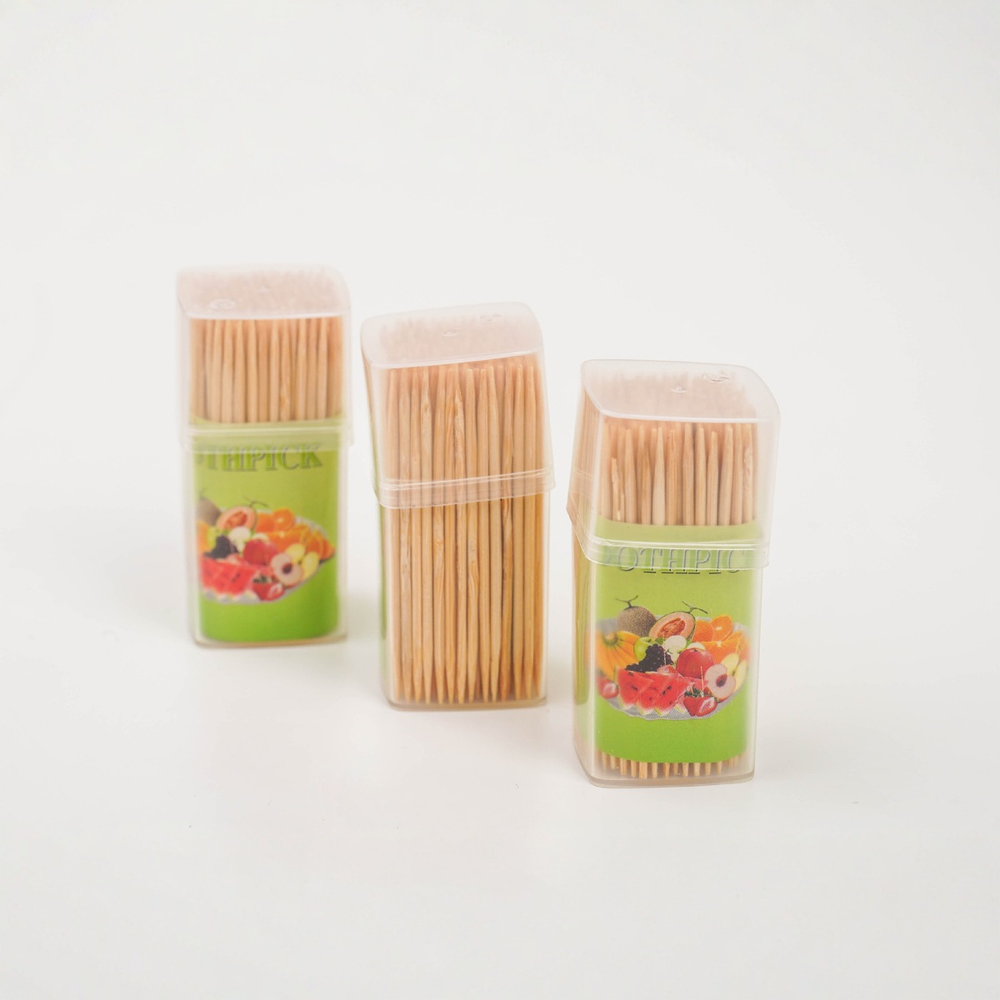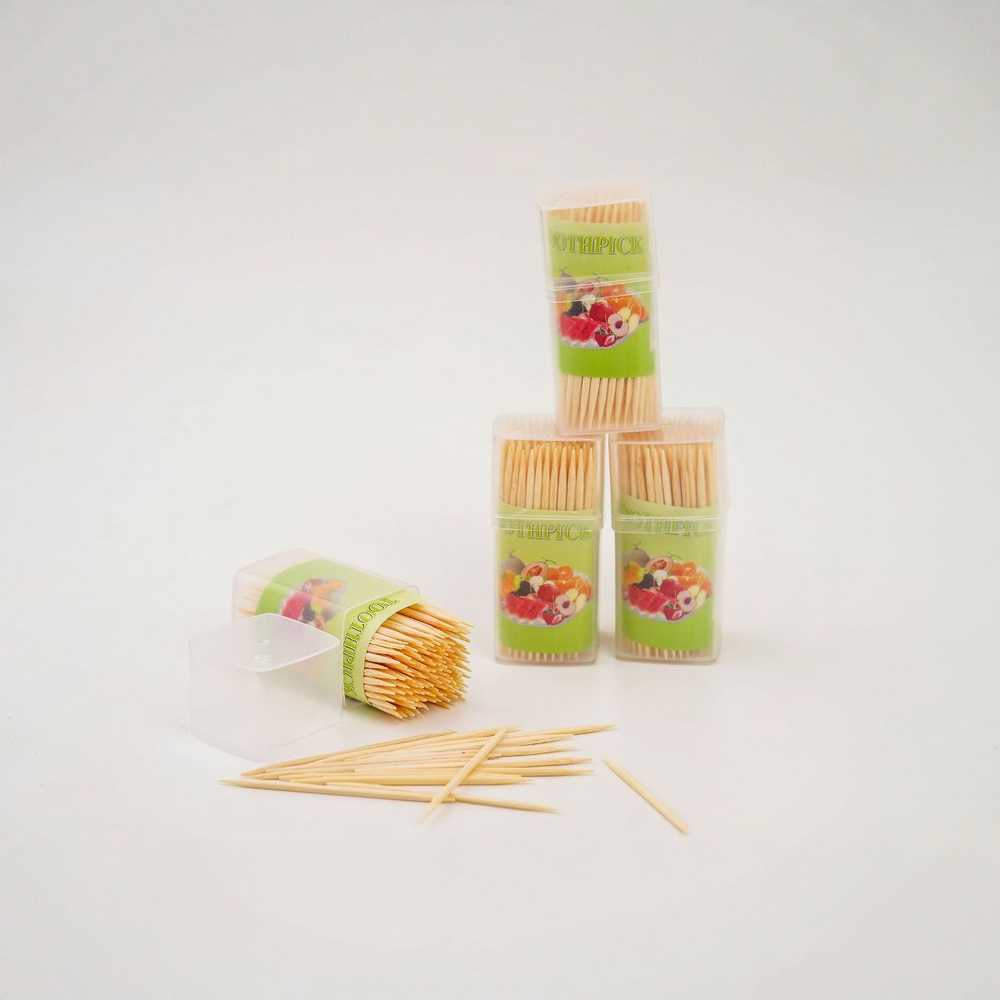 (Escarbadientes de madera y estuche de plástico, paquete de 12 unidades. Ideal para una picada).