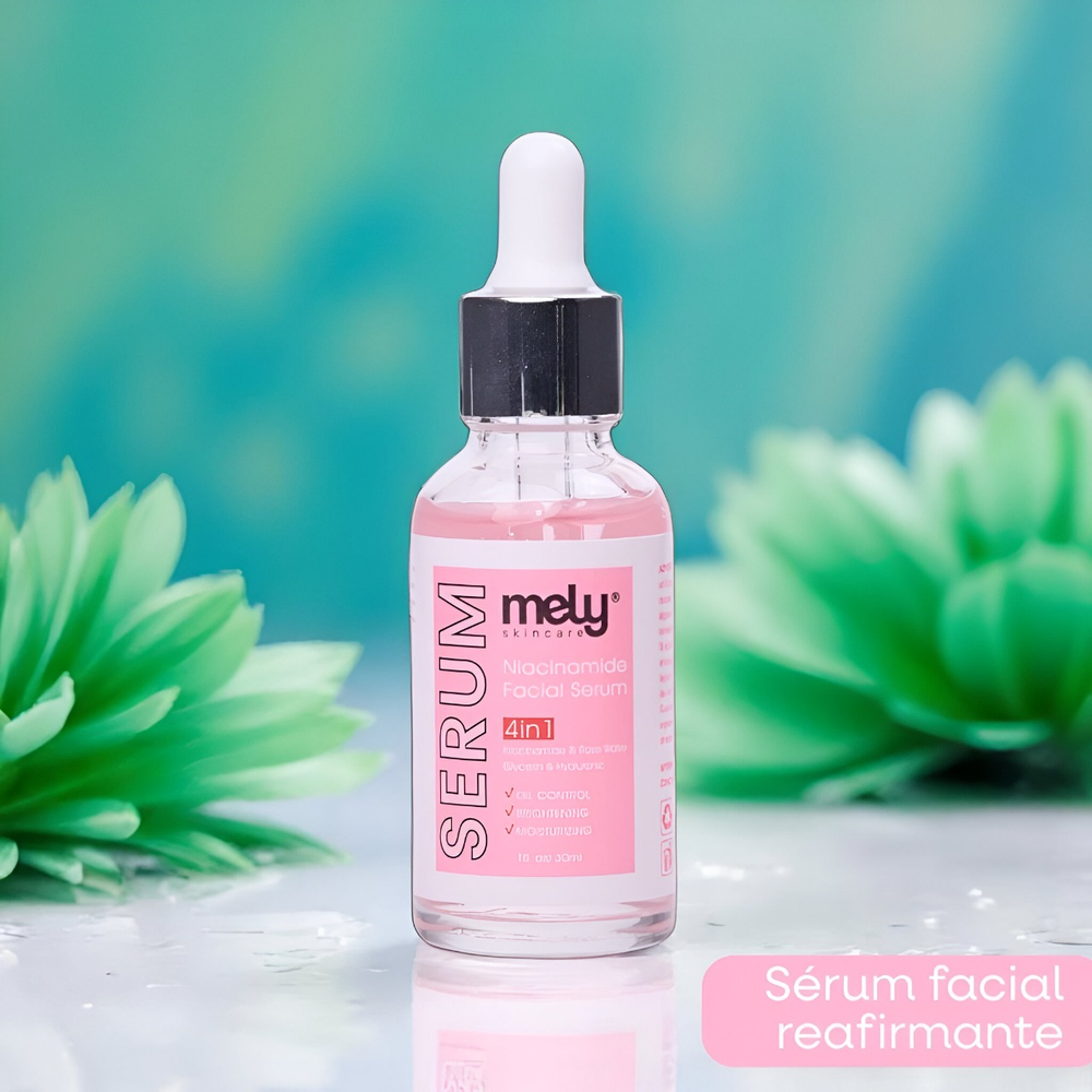(Serum Facial Reafirmante "Mely" ayuda a hidratar intensamente, refrescar, calma irritaciones y regenera la piel. Ideal para pieles maduras o dañadas. Contiene niacinamida, agua de rosas, glicerina y ácido hialurónico).