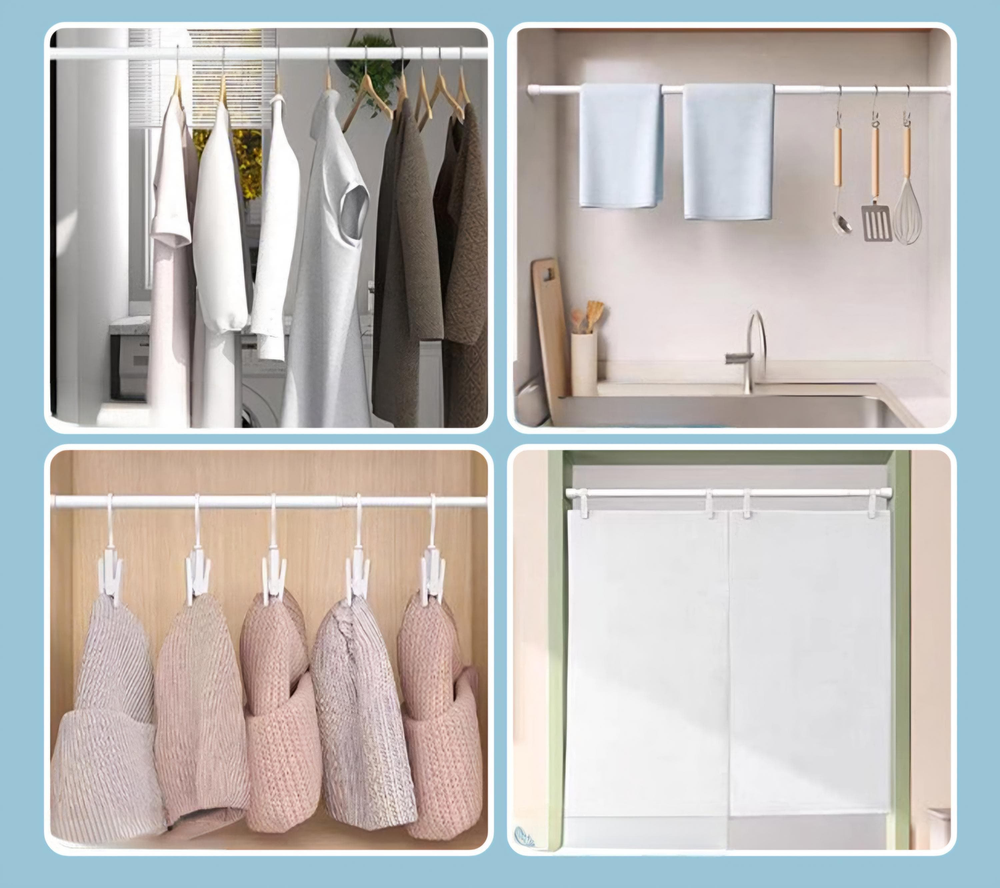 ( Fácil instalación sin herramientas, sin daños en paredes, puertas y ventanas. Adecuado para colgar cortinas de ducha, cortinas, armarios, etc).