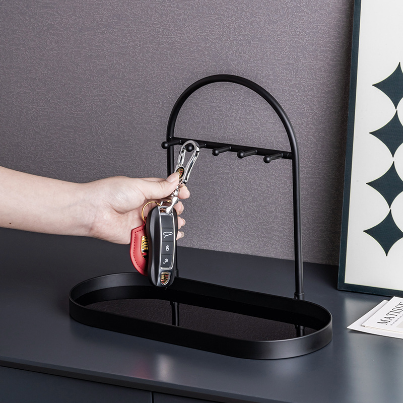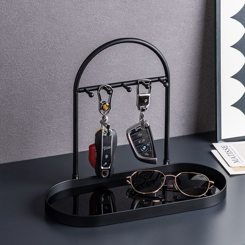 (Estante organizador cuenta con 5 ganchos para gusrdar llaves y la bandeja inferior sirve para gafas, relojes, perfumes, cosméticos, etc, diseño miimalista y elegante).