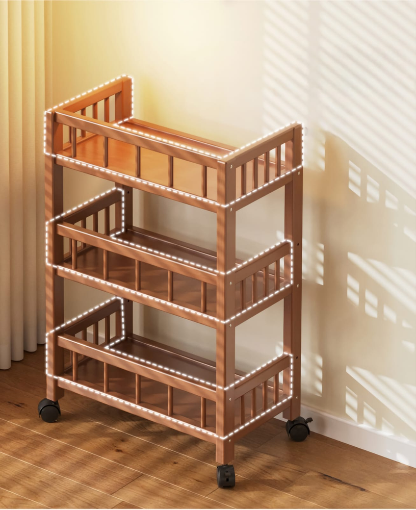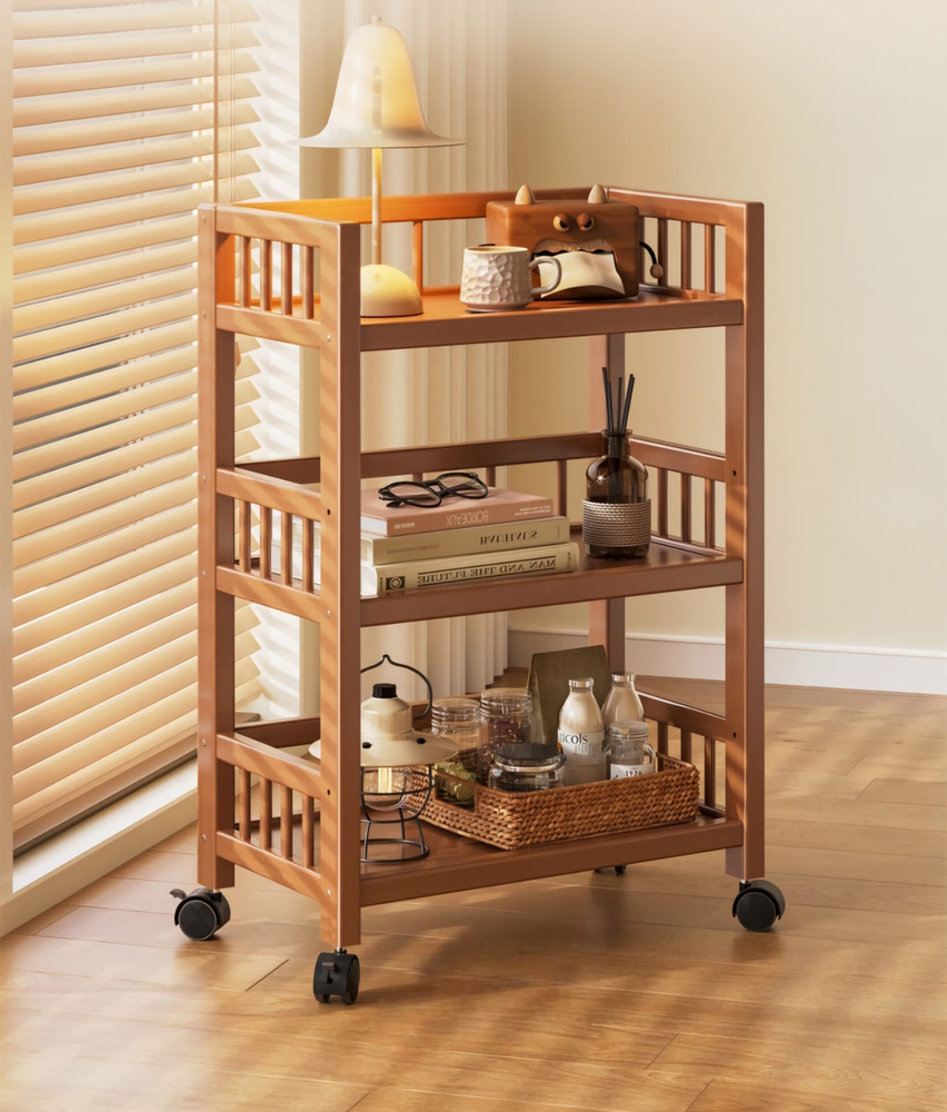 (Carrito organizador 3 niveles. hecho de madera y con rudas de plástico , facil de transportar. Ideal para mantener el orden en tu hogar).