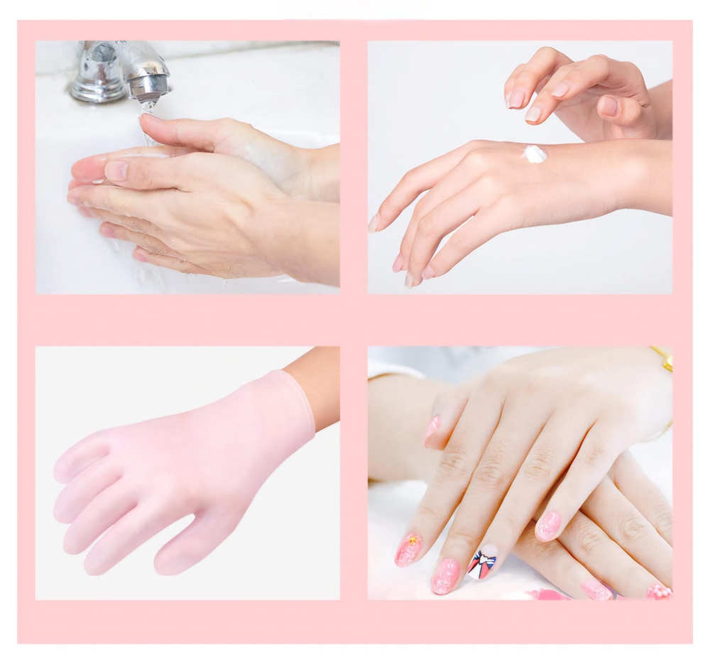 (Colocarse crema o loción en las mano, luego los guantes para prolongar y mejorar los efectos . Ayudad fácilmente a aliviar la piel seca, agrietada y áspera).