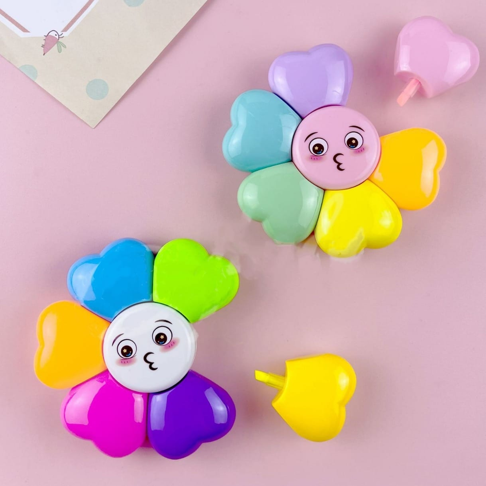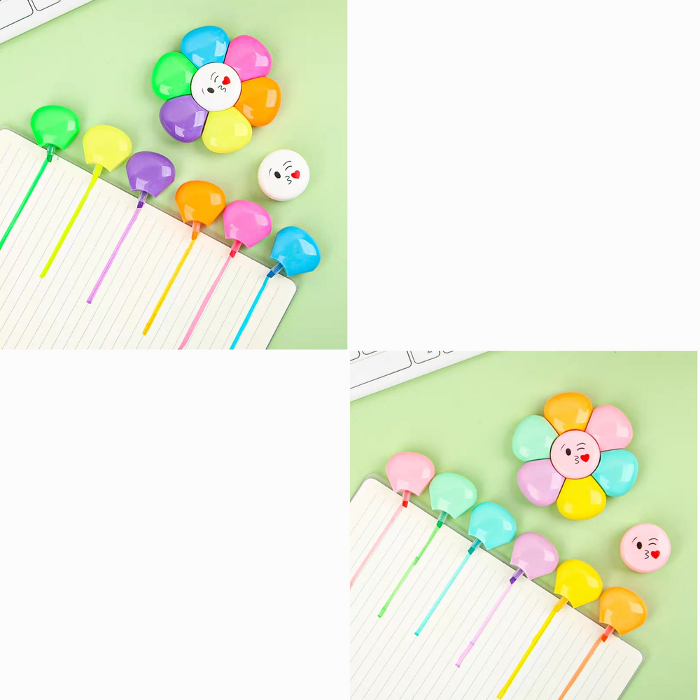 (Resaltador x 6U. en forma de flor, vienen dos modelos con colores diferentes . Ideal tener todo en uno sin que te ocupe mucho espacio en la cartuchera).