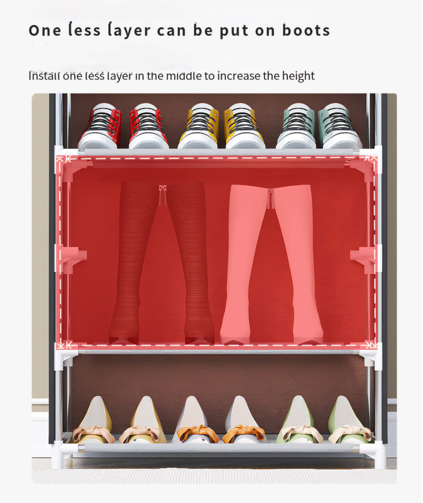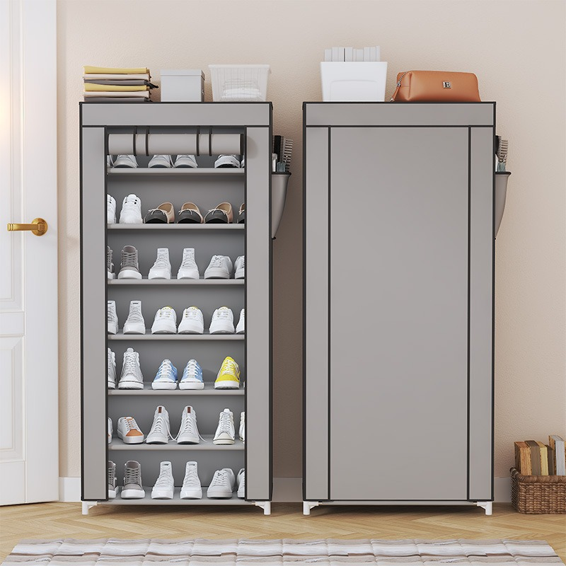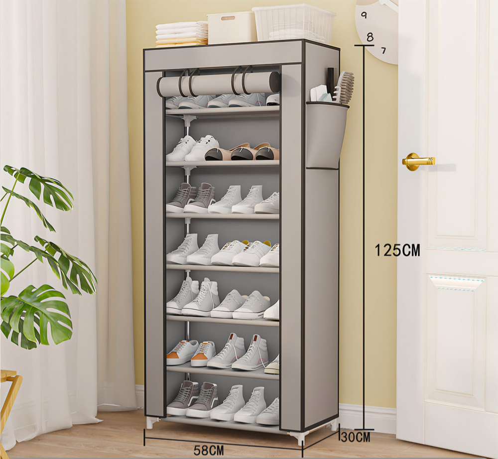 (Zapatero Multiuso de 7 niveles. Cuenta con cierre para mayor privacidad, los tubos son metalicas, tela de polipropileno y los conectores de ABS. Este producto puede utilizarse para guardar y organizar lo que mas le guste. Disponible en color gris).