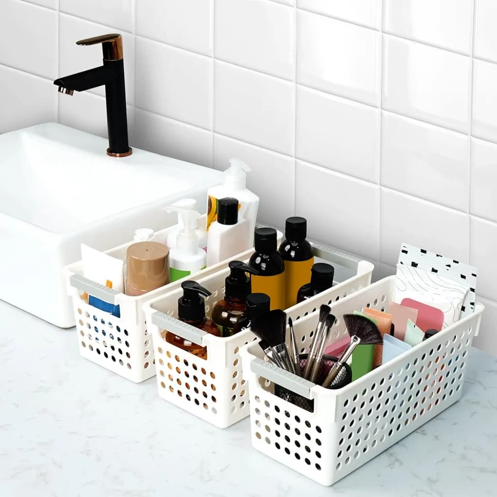 (Caja organizadora chica, ideal para organizar tus cosas del baño, como toallas de mano, productos de limpieza, shampoo,etc. Además ayuda a organizar tu espacio, haciendo más lugar).