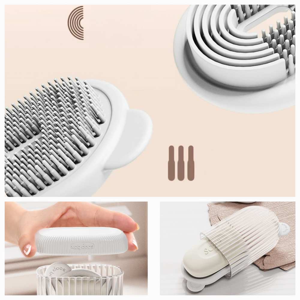 (Jabonera con diseño elegante, cuenta con un cepillo , disponible en dos colores. Diseño hermetico ideal para llevar de viaje o uso diario).