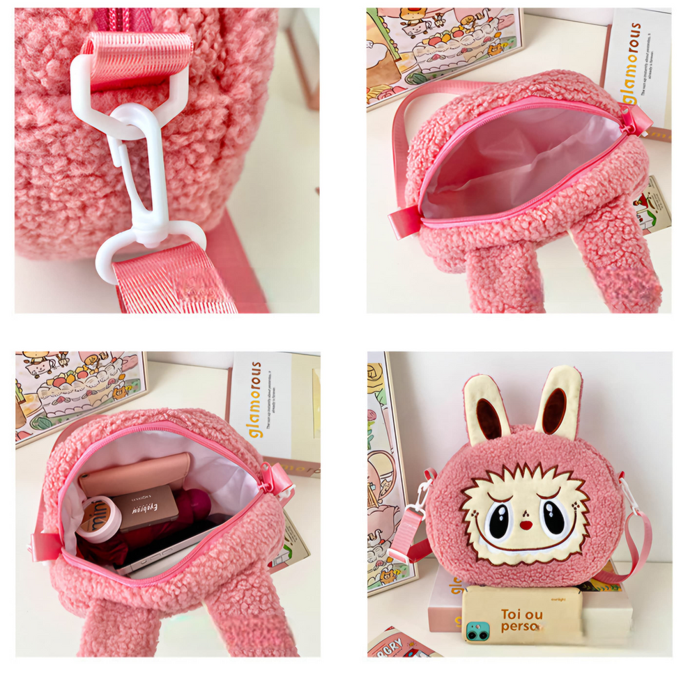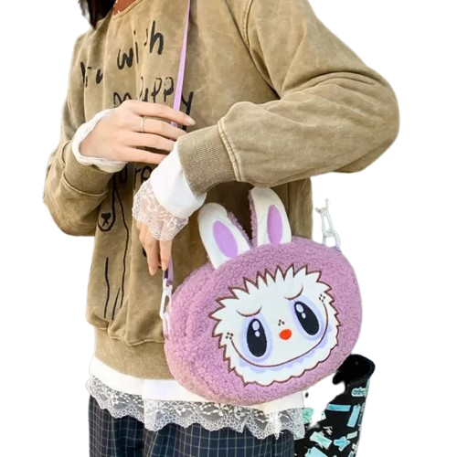 (Bandolera con diseño de "Labubu". Cuenta con 4 opciones diferentes a elección. Ideal para darle un toque diferente a tus outfit).
