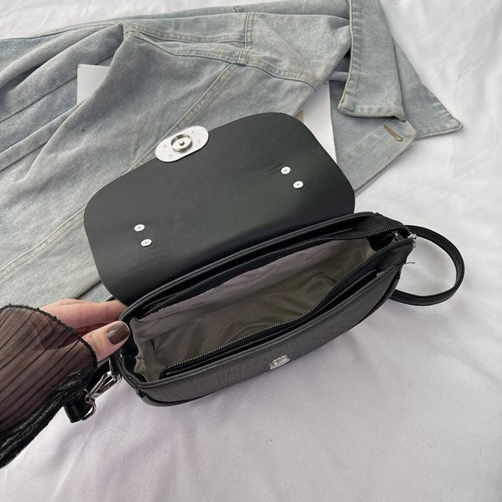 (Cartera chica disponible en 3 tonos diferentes a elección. Cuenta con una correa ajustable que la transforma en una bandolera. En su interior cuenta con un compartimiento. Su diseño compacto la hace perfecta tanto para salidas casuales como para eventos especiales, combinando practicidad y elegancia en un solo accesorio).