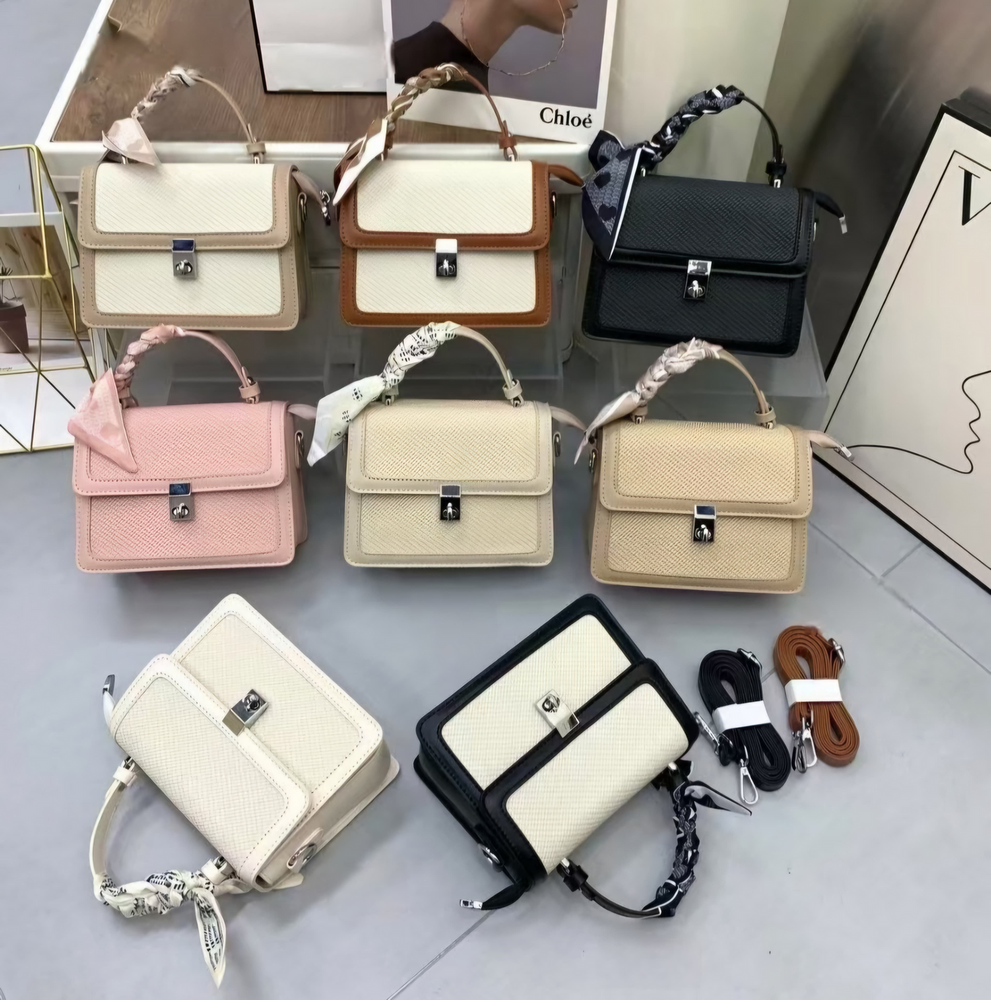 (Cartera chica disponible en 3 tonos diferentes a elección. Cuenta con una correa ajustable que la transforma en una bandolera. En su interior cuenta con dos compartimiento, uno con cierre principal. Su diseño compacto la hace perfecta tanto para salidas casuales como para eventos especiales, combinando practicidad y elegancia en un solo accesorio). NO INCLUYE PAÑUELO, IMÁGEN ILUSTRATIVA