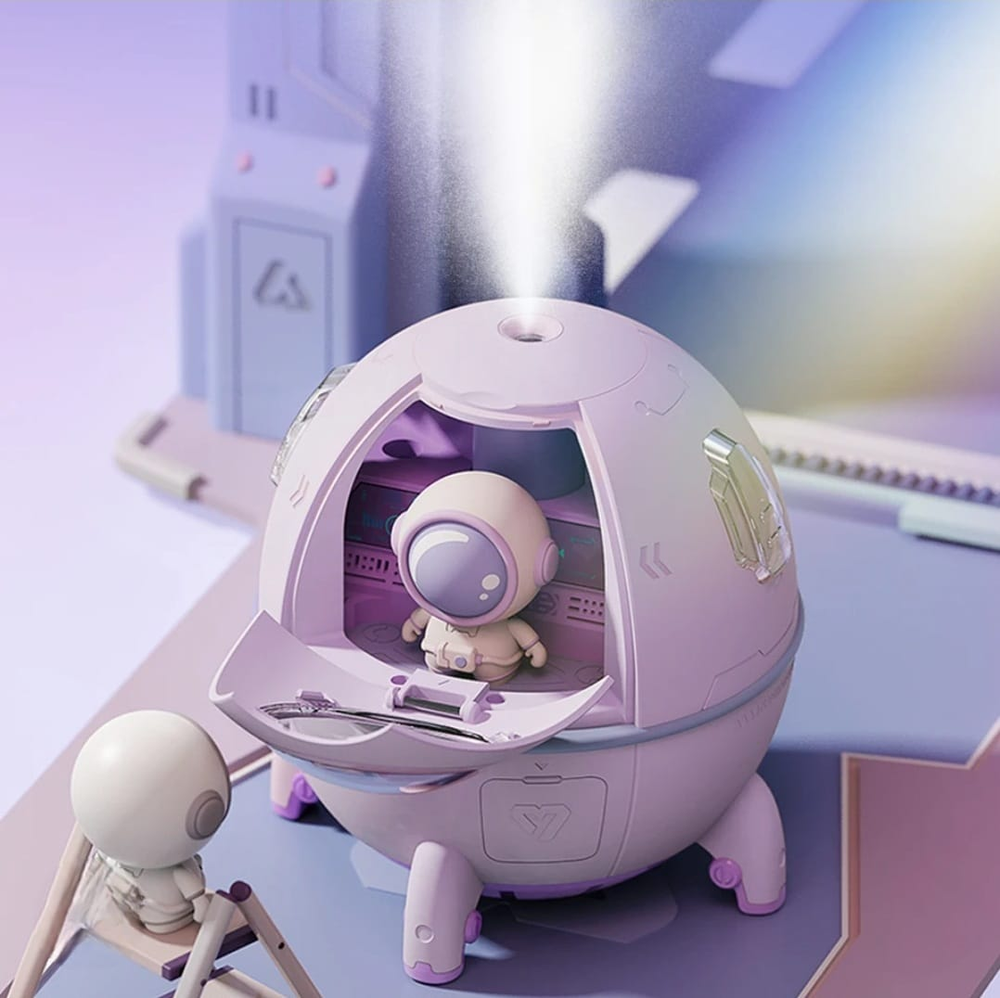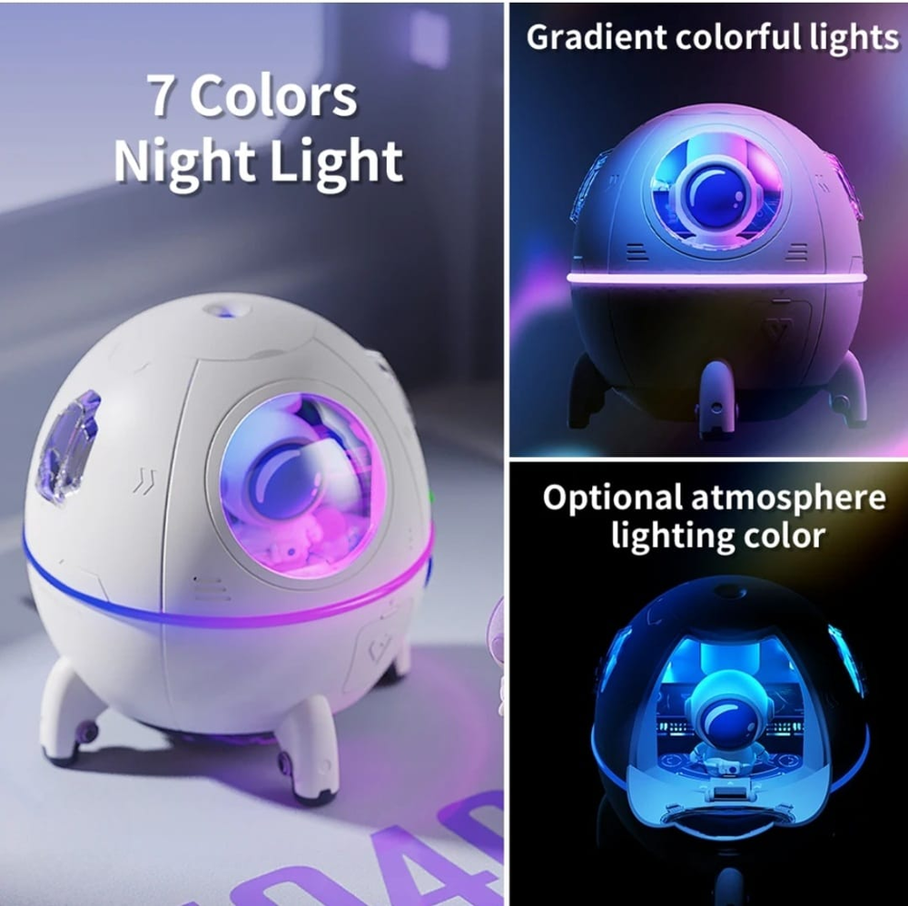 (Humidificador y Aromatizador con luces de nave con astronauta. Cuenta con luz LED que cambia automáticamente y es recargable vía USB (incluido) y posee botón de encendido/apagado. Ideal para aromatizar tu hogar. Cuenta con 2 opciones diferentes, funciona enchufada). EL COLOR DEL ASTRONAUTA PUEDE VARIAR