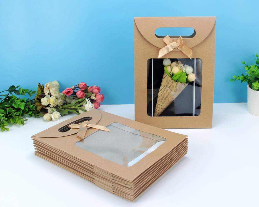 (Bolsas de regalo de cartón que cuentan con su centro transparente, y un moño que le da un toque especial a tus regalos).