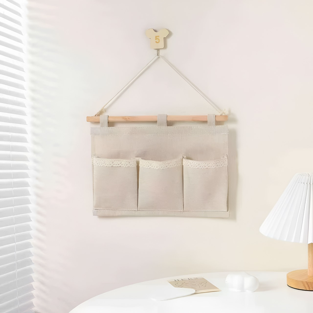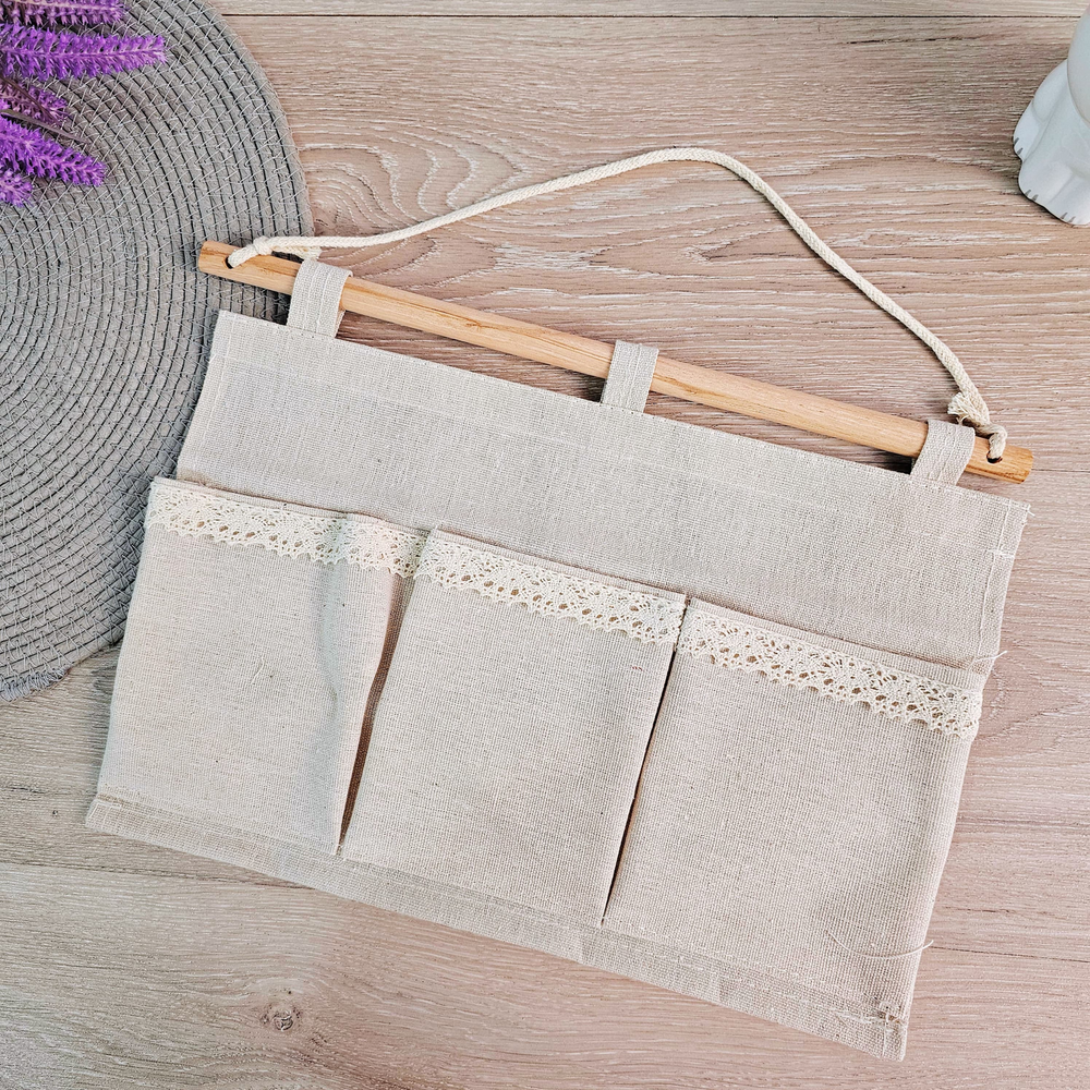 (Organizador colgante con 3 compartimientos,material resitente simil lino grueso de excelente calidad. El cual puede usarse donde quieras, en el baño, la cocina o donde lo necesites. ideal para que tus cosas estén organizadas).