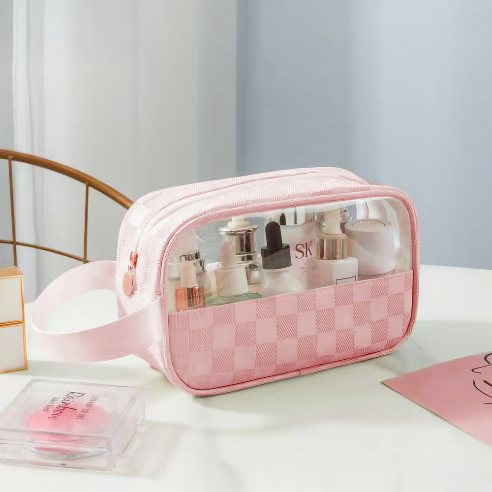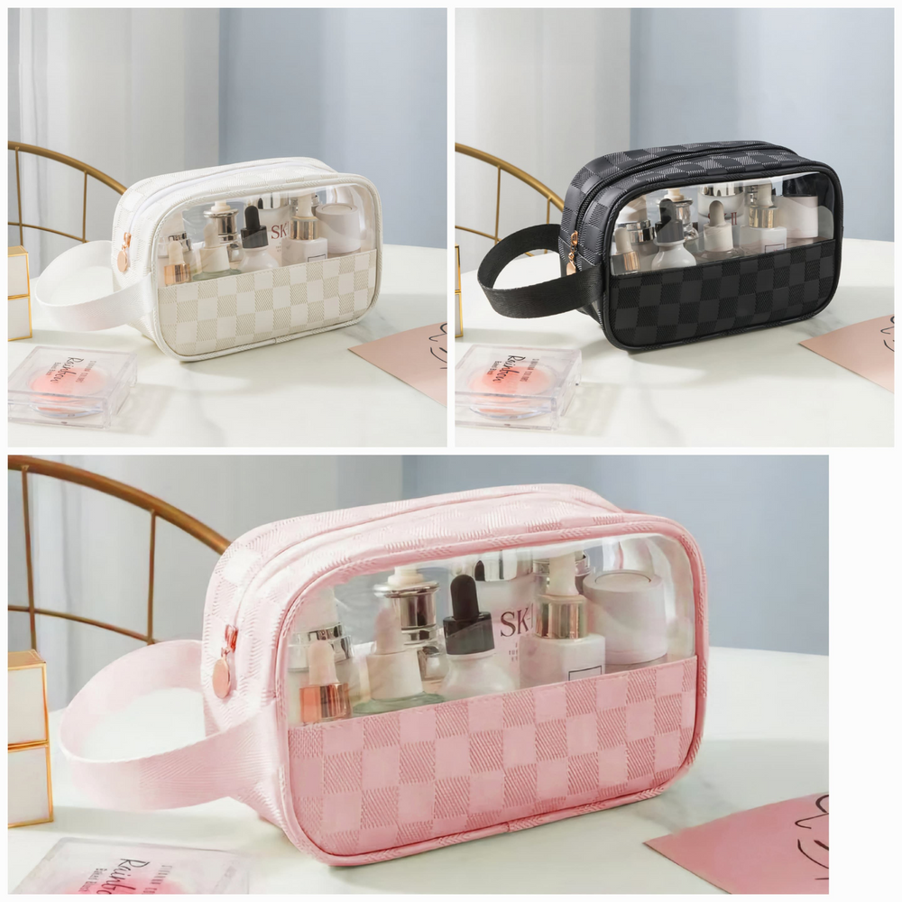 (Portacosmetico Chico. Cuenta con 3 opciones diferente con un amplio compartimiento, visor y manija ideal para poder transportarlo donde quieras. Este Portacosmetico permite que puedas ordenar todos tus maquillajes, brochas, o lo que mas quiera, etc).