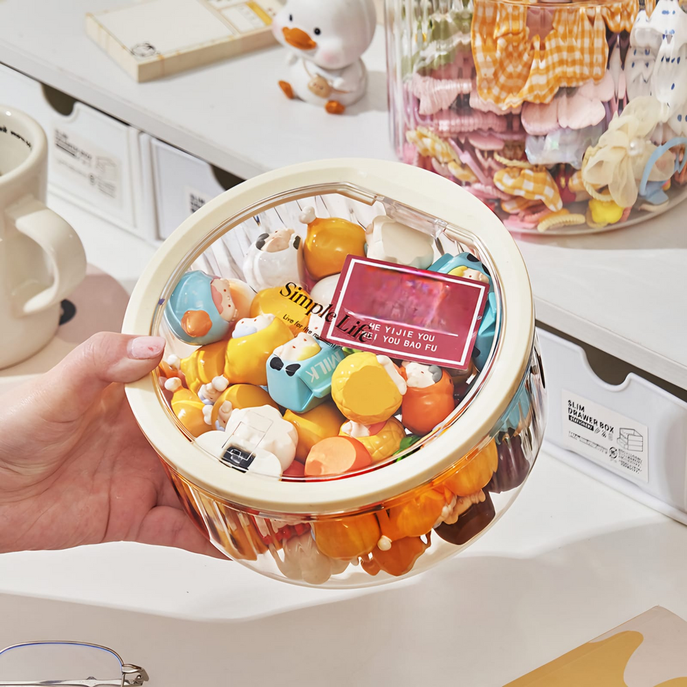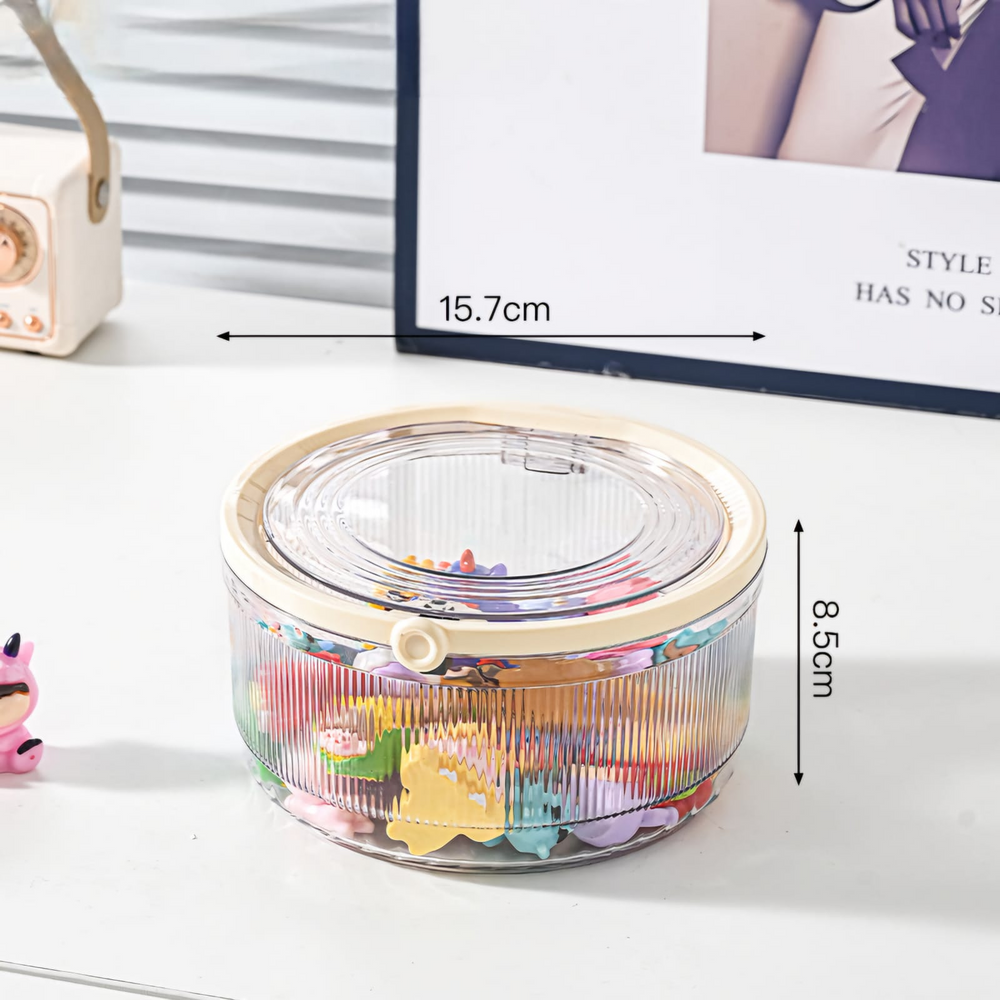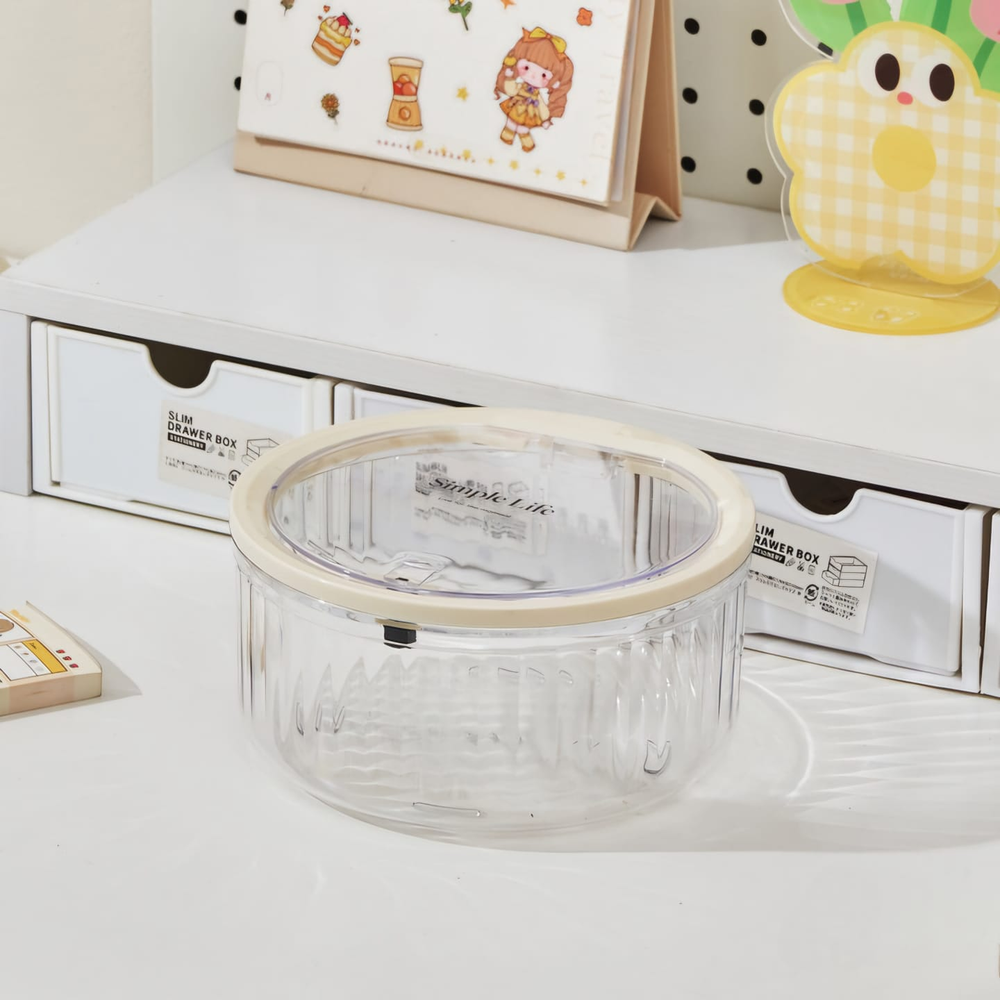 (Organizador redondo multiuso con tapa, el cual permite colocar, lápices, brochas o lo que usted elija. Ideal para colocarlo en la habitación, en el baño o en su escritorio).