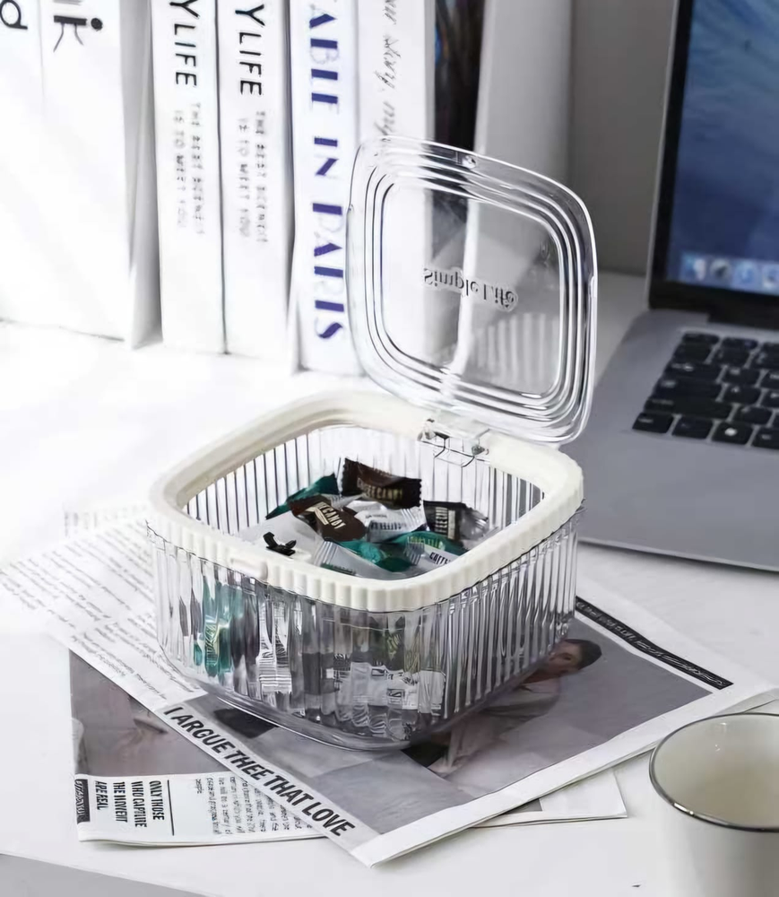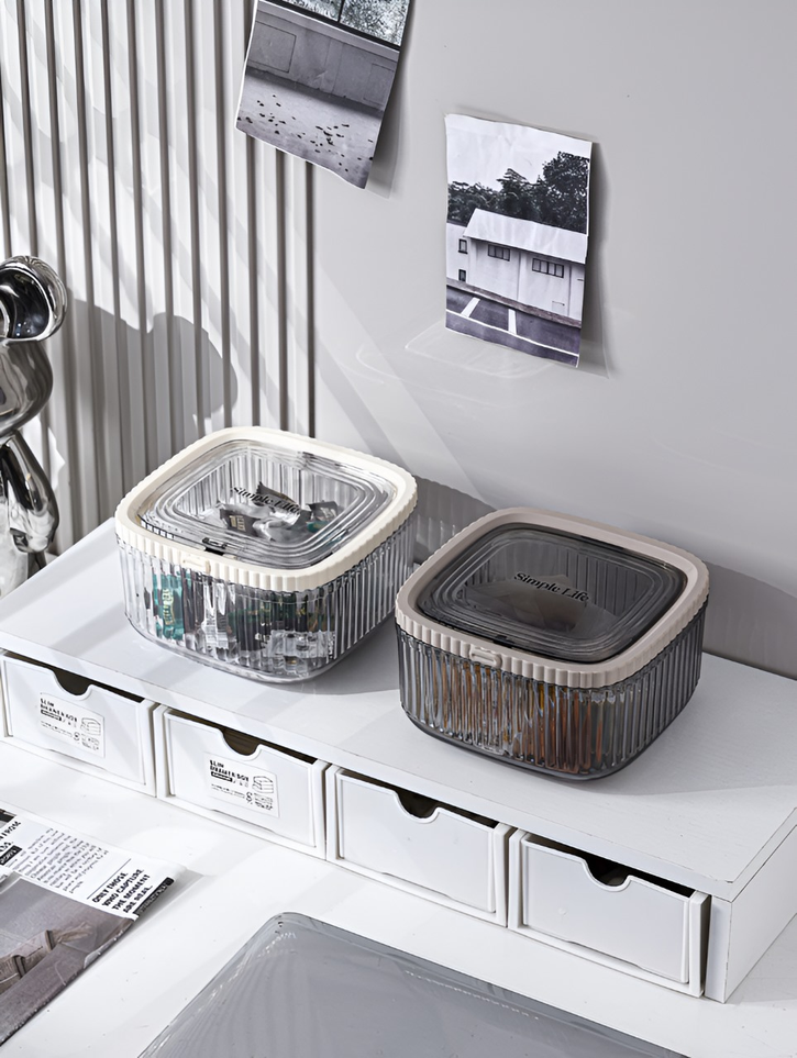 (Organizador cuadrado multiuso con tapa, el cual permite colocar, lápices, brochas o lo que usted elija. Ideal para colocarlo en la habitación, en el baño o en su escritorio).